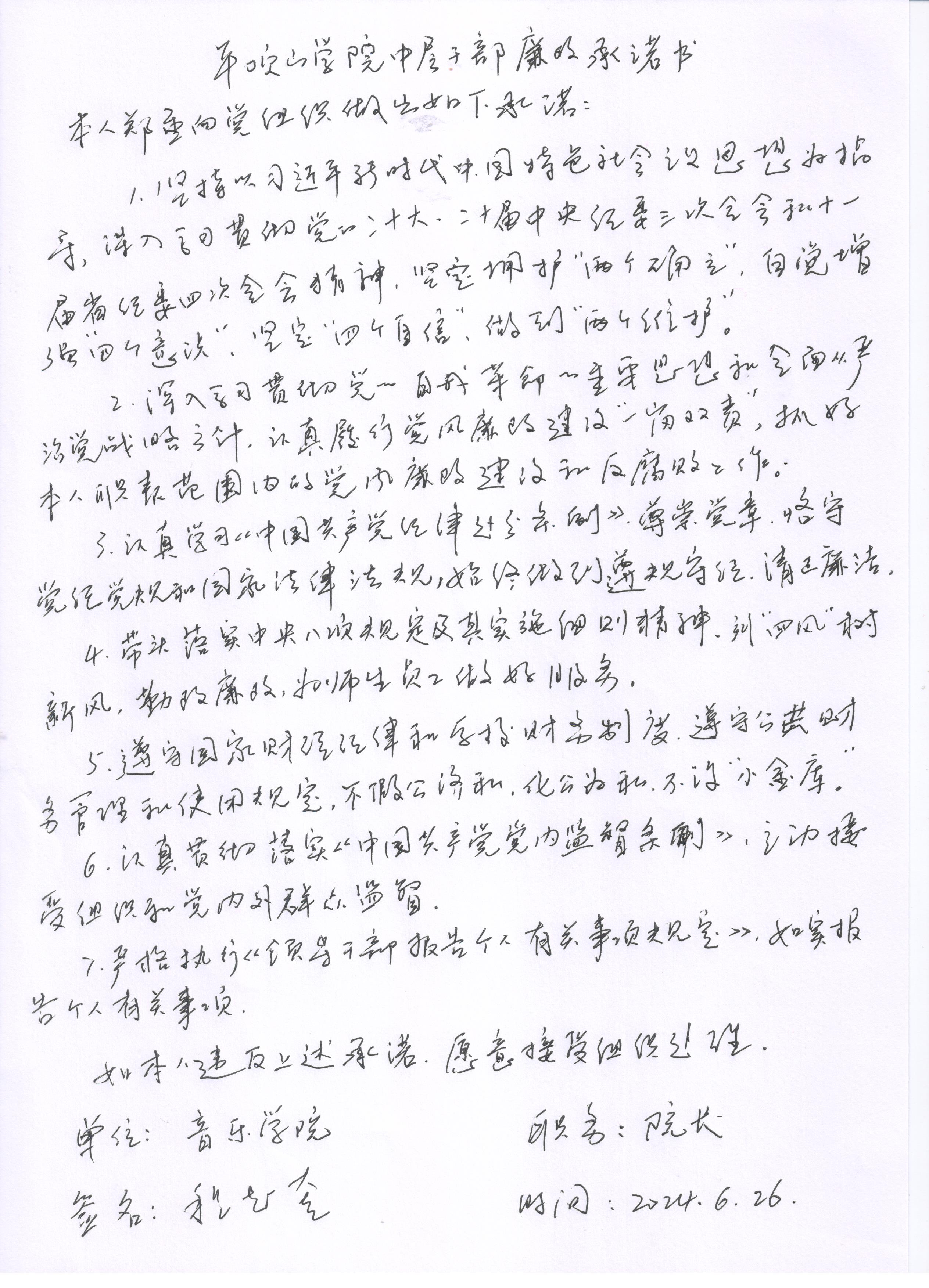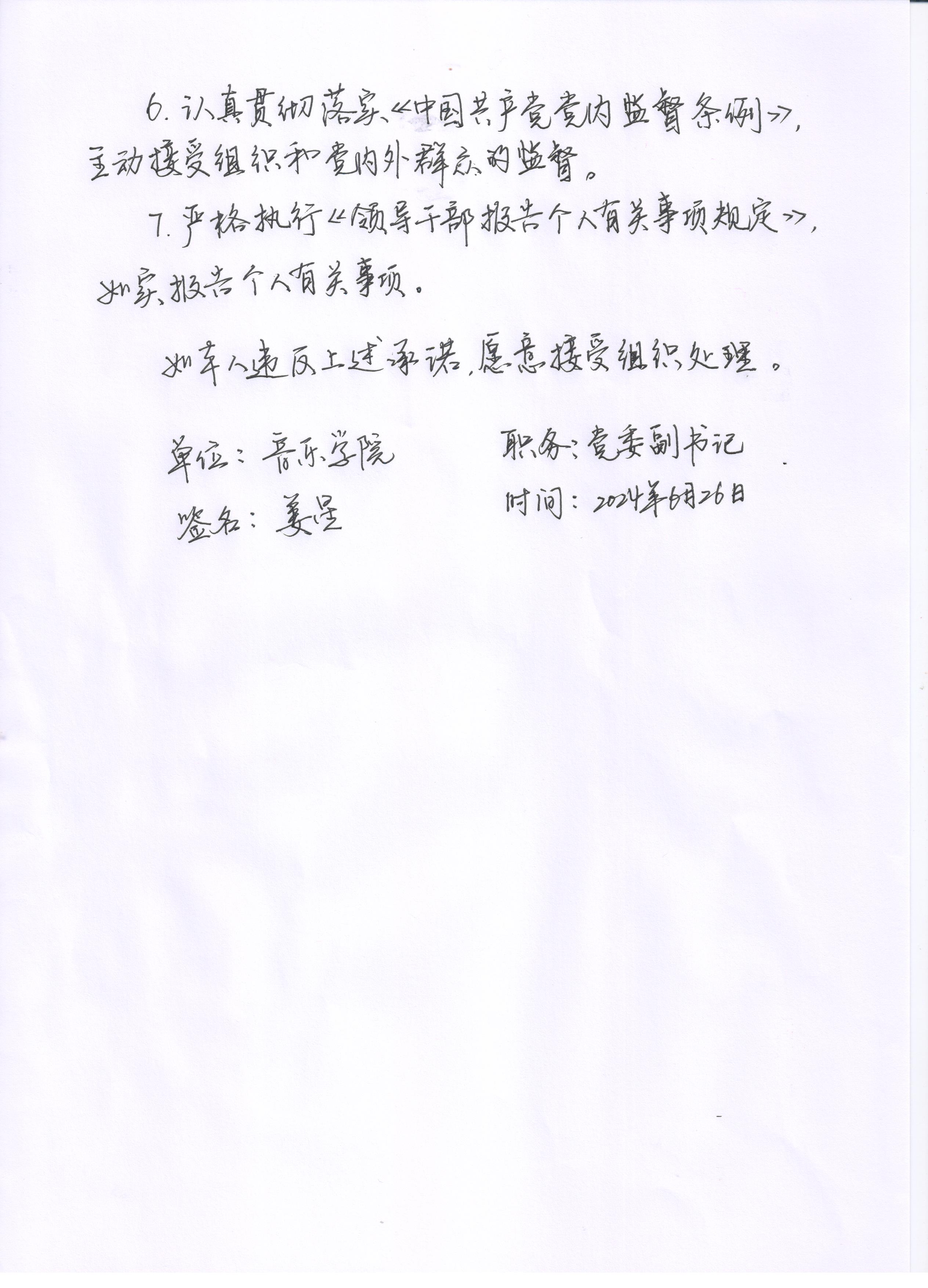 公司党委副书记姜星廉政承诺书