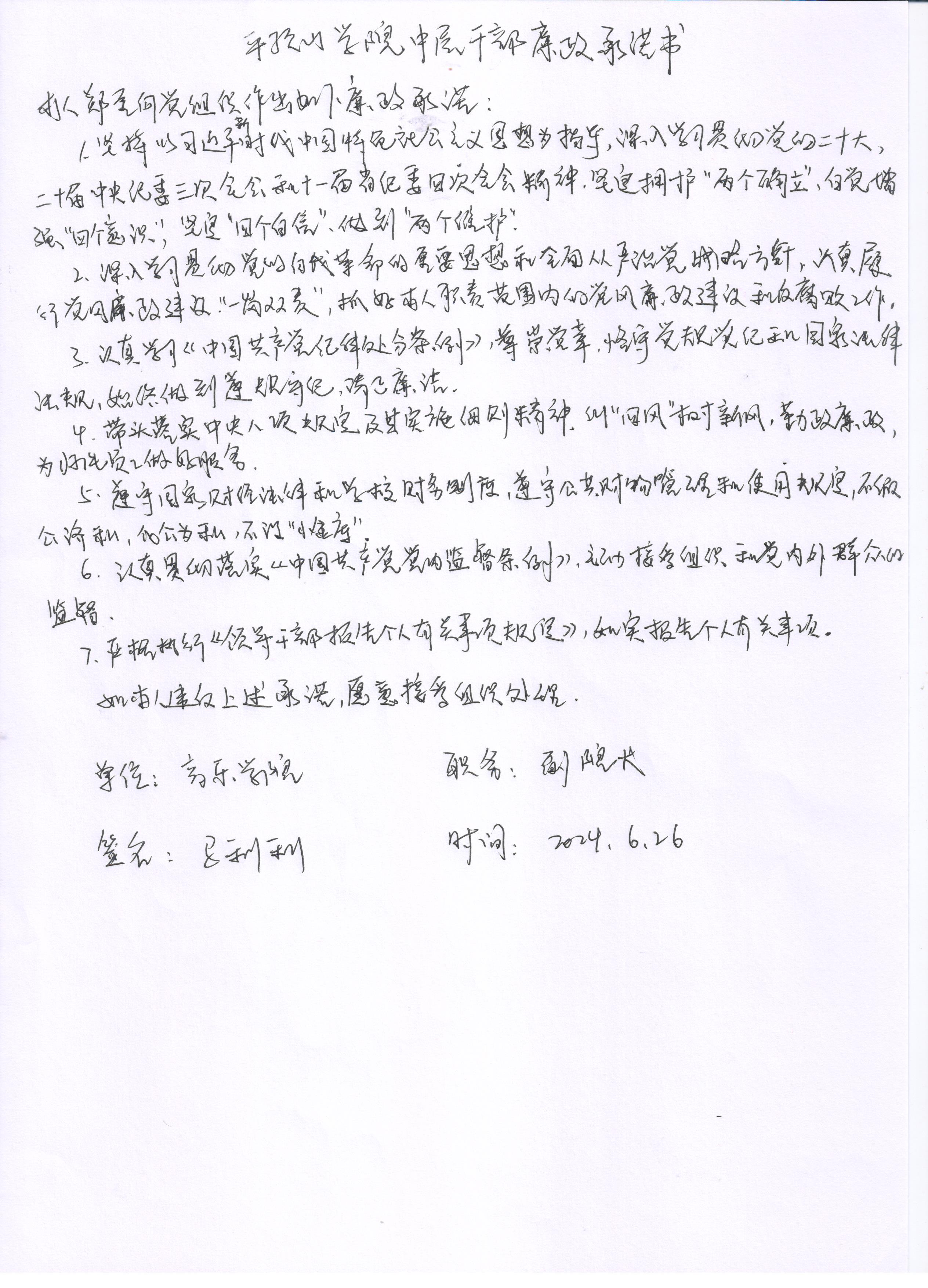 英国上市365副经理马利利廉政承诺书