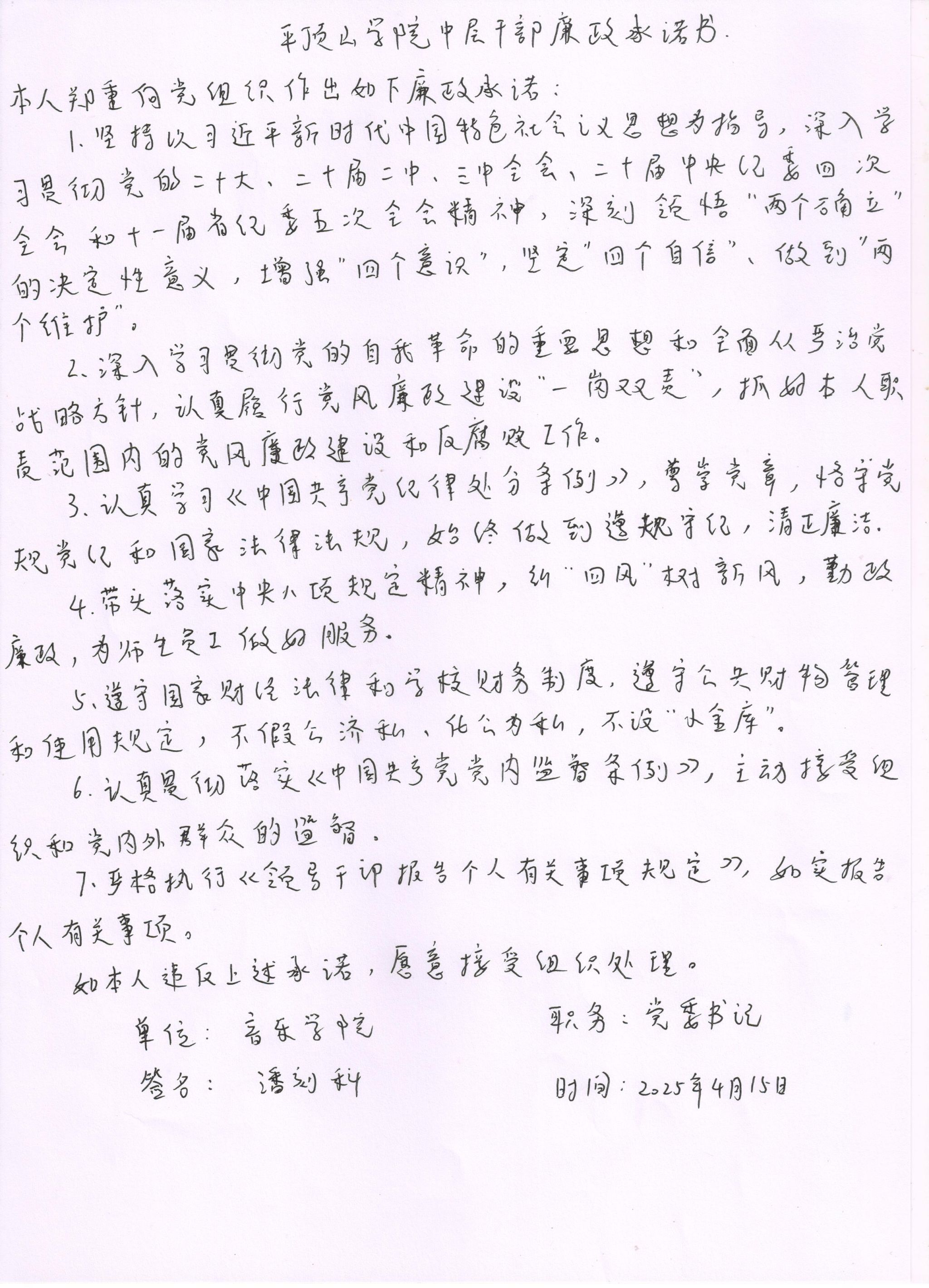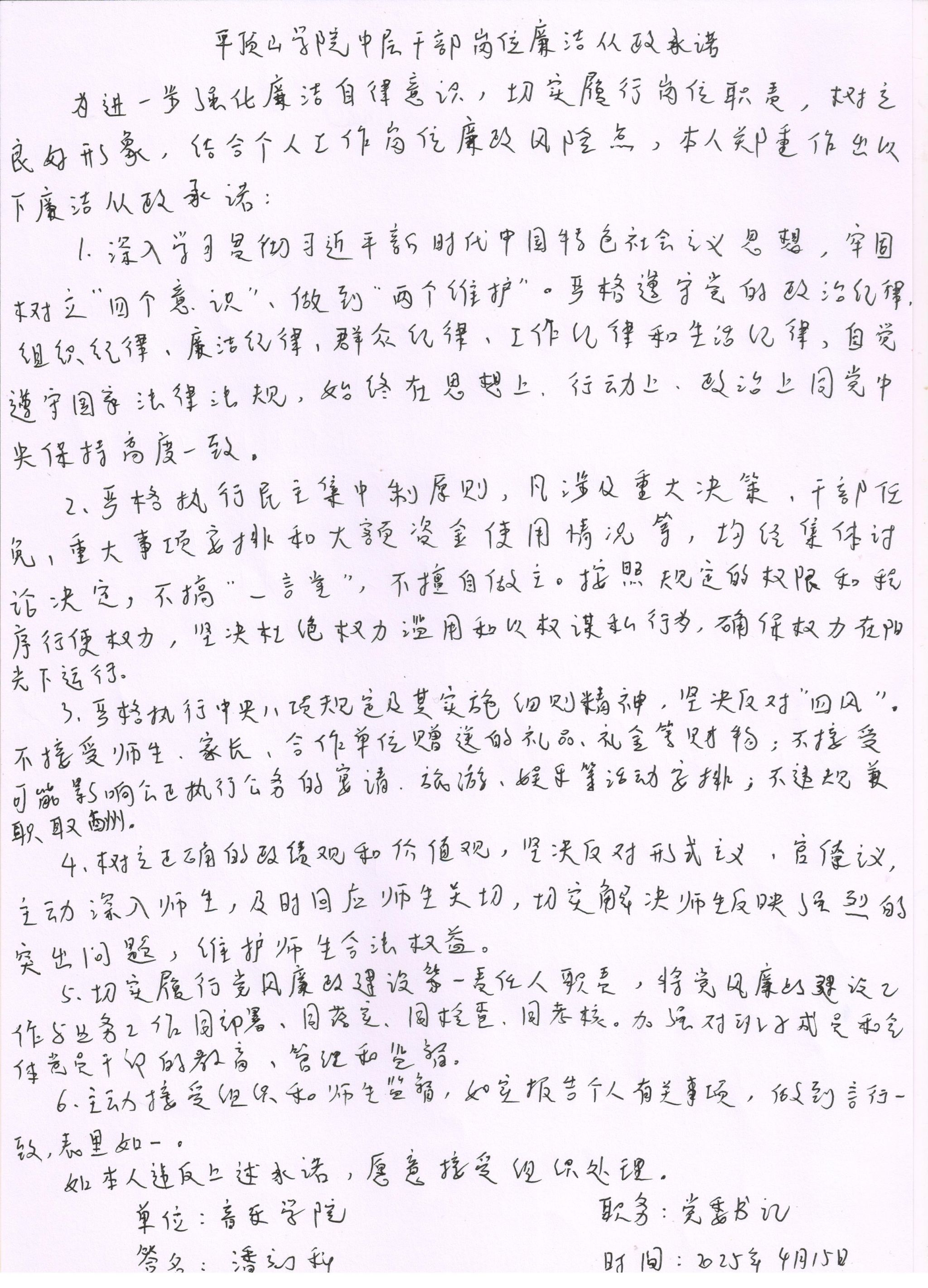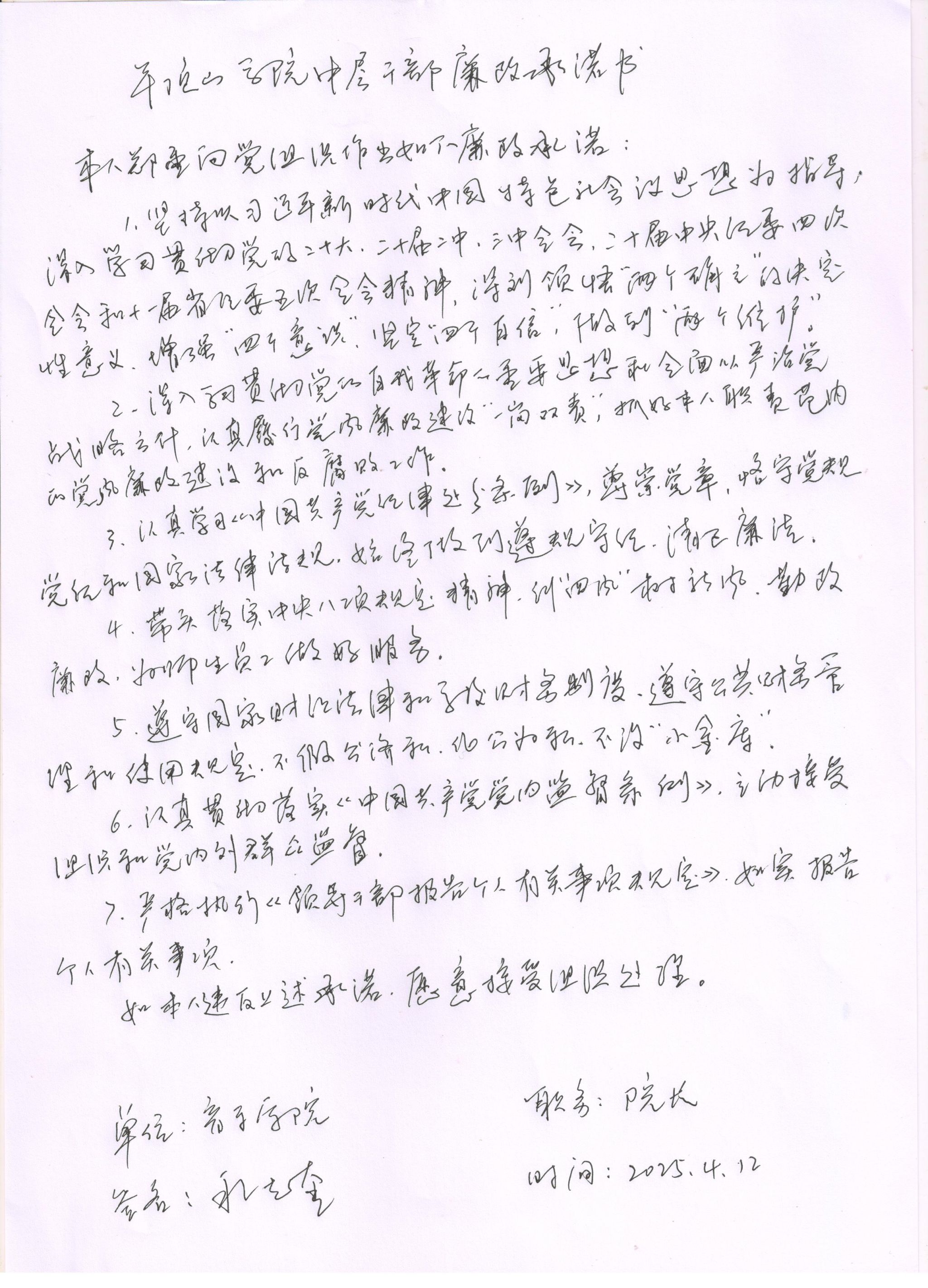 2025年英国上市365中层干部岗位廉洁从政承诺书