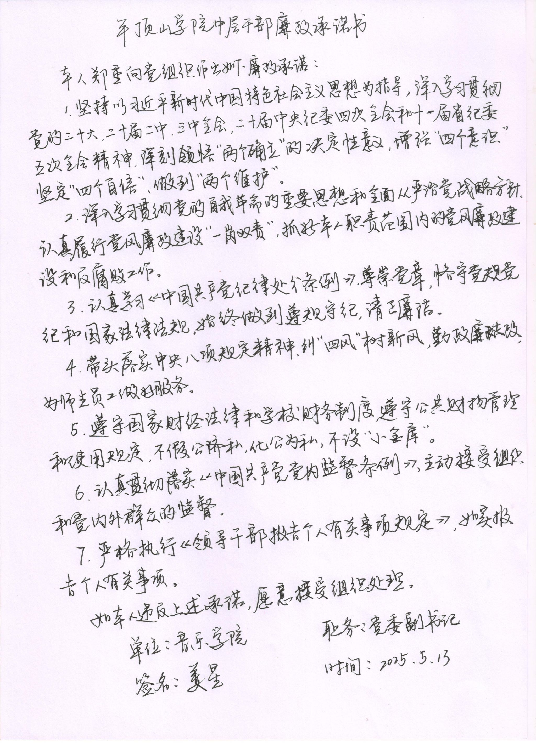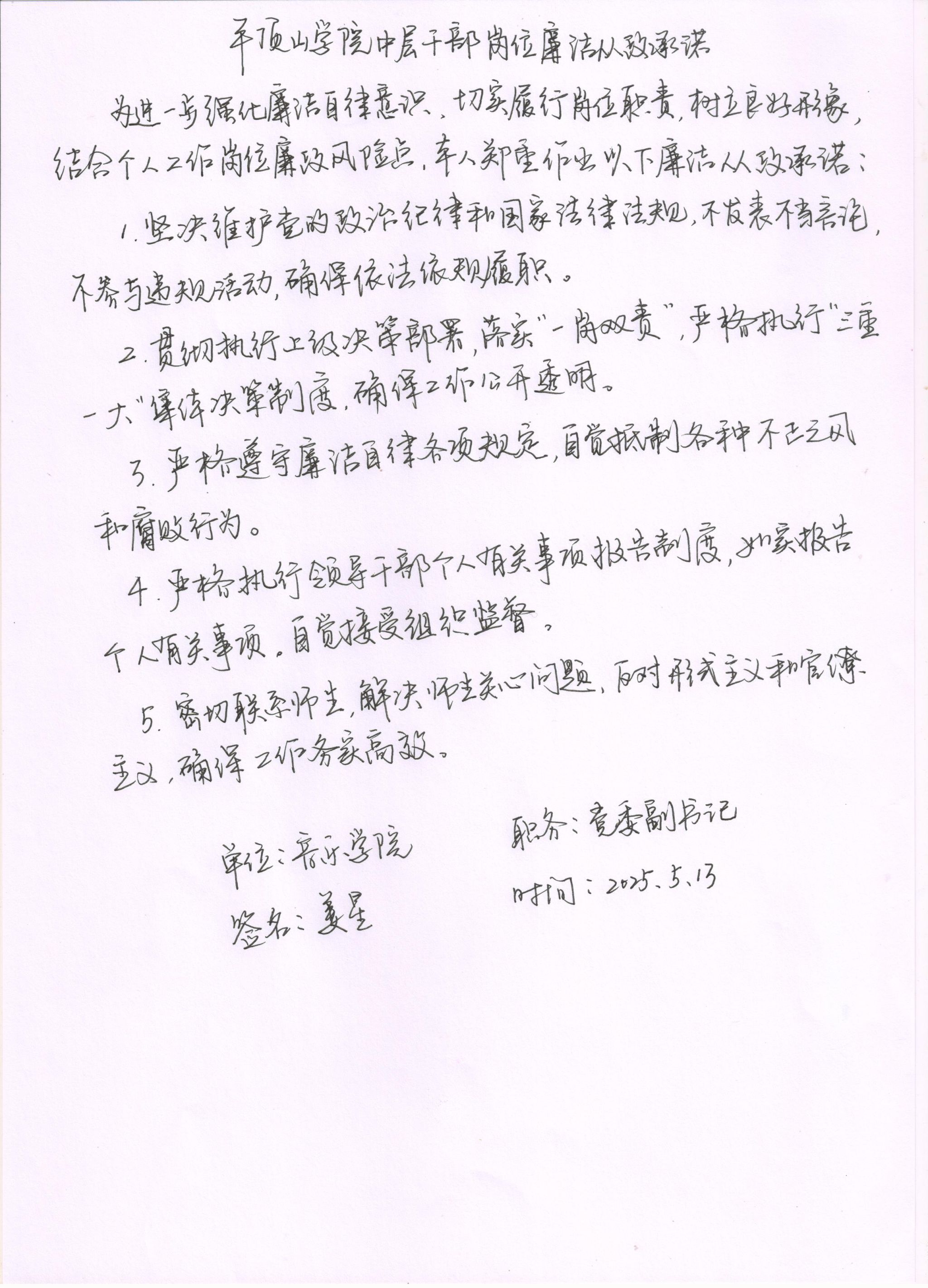 2025年英国上市365中层干部廉政承诺书