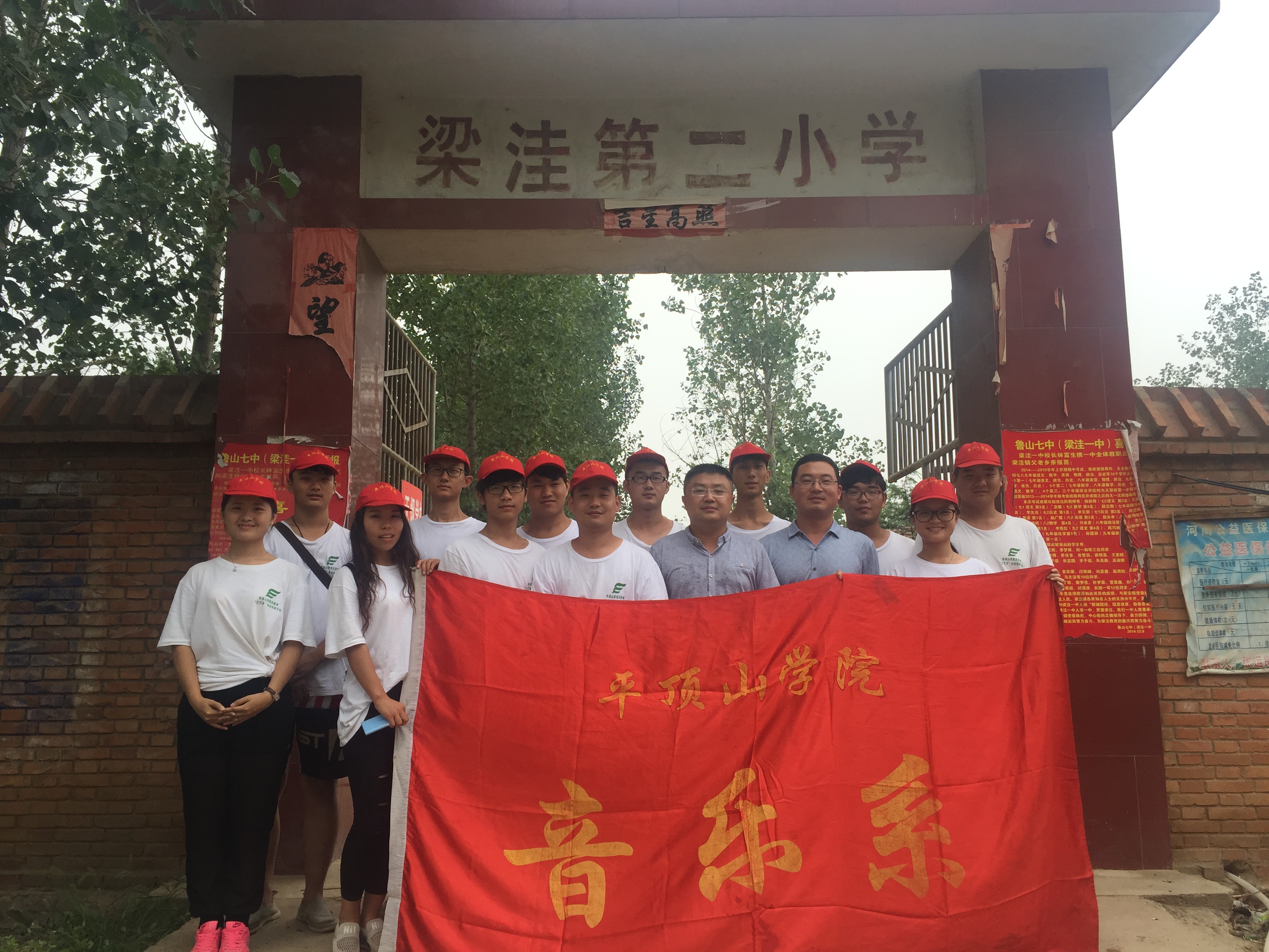 7月22日,音乐系党总支书记高磊、团总支书记谢晓飞一同前往我系“三下乡”社会实践服务团所在地——梁洼二小,看望志愿者们,并为其带来了生活物资。