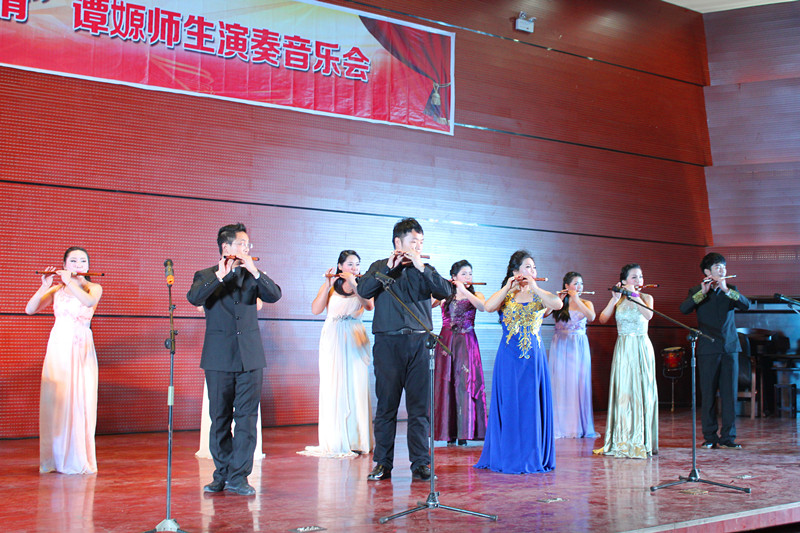 竹笛传情齐奏欢歌,师生同台共谱新篇。数载讲台勤耕耘,鹰城大地遍流芳。