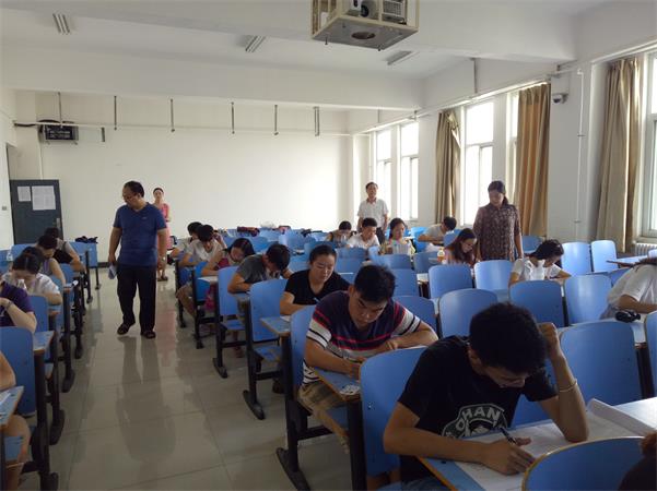 6月26日上午,公司期末考试正在严肃、紧张、有序地进行,公司领导班子一行到考试现场进行巡视。
