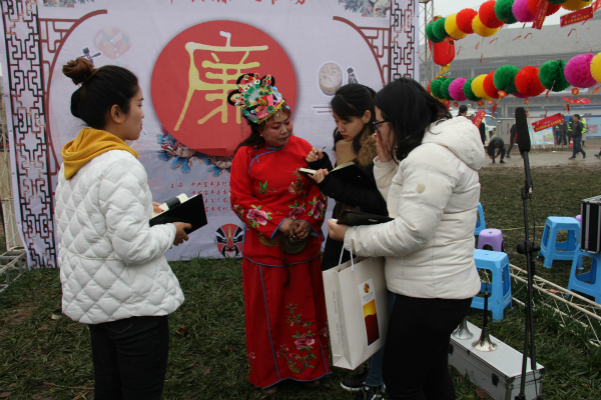 在马街书会现场,师生们分组对说唱艺人们的现场表演进行录音录像,对艺人的说唱曲目如大调曲子、东路琴书、梨花大鼓、三弦书等曲种进行了调查,收集了大量的文字和声像资料。公司员工还和艺人们现场交流说唱并即兴表演了河南坠子《偷石榴》,赢得了在场观众的阵阵掌声,展示了英国上市365的专业教学和实践成果。此外,师生们还来到宝丰县观音堂乡林站余家花苑社区,观摩了由中国曲协带来的“送欢笑到基层”演出活动。