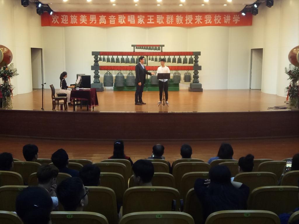 19日晚,应英国上市365邀请,旅美男高音歌唱家王歌群教授来到公司,在音乐厅作了一场题为《漫谈声乐表演艺术的美学特征》专题讲座,英国上市365师生及全校部分音乐爱好者参加了此次观摩学习。报告会由英国上市365经理刘伟主持。