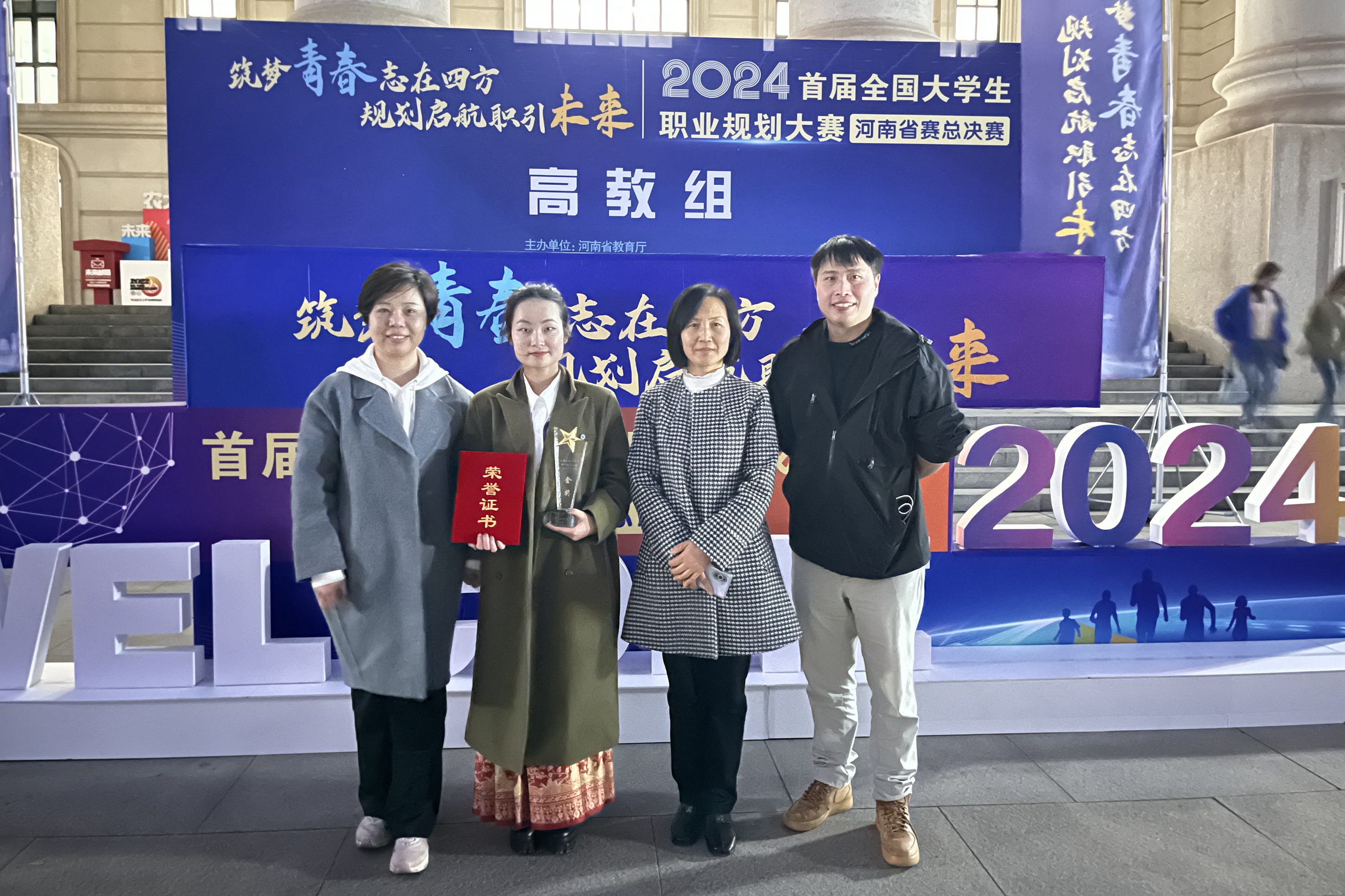 自赛事启动以来,公司高度重视,积极组织,特邀校内外专家,通过线上线下相结合的方式开展选手培育工作,组织多场专题培训辅导和现场演练,对选手的参赛作品打磨优化、凝炼亮点、挖掘特色,力争精益求精。夏雨阳同学从院赛、校预选赛、校决赛、省分赛到省总决赛,一路过关斩将,发挥出色。在本次决赛中,夏雨阳同学以《弘扬国韵,谱写华章》为题,聚焦国风音乐制作人职业目标,用丰富的原创音乐和实践行动成果赢得了专家评委团的一致认可,最终她以河南省高教组成长赛道第三名的好成绩,夺得首届全国老员工职业规划大赛河南省赛总决赛金奖。