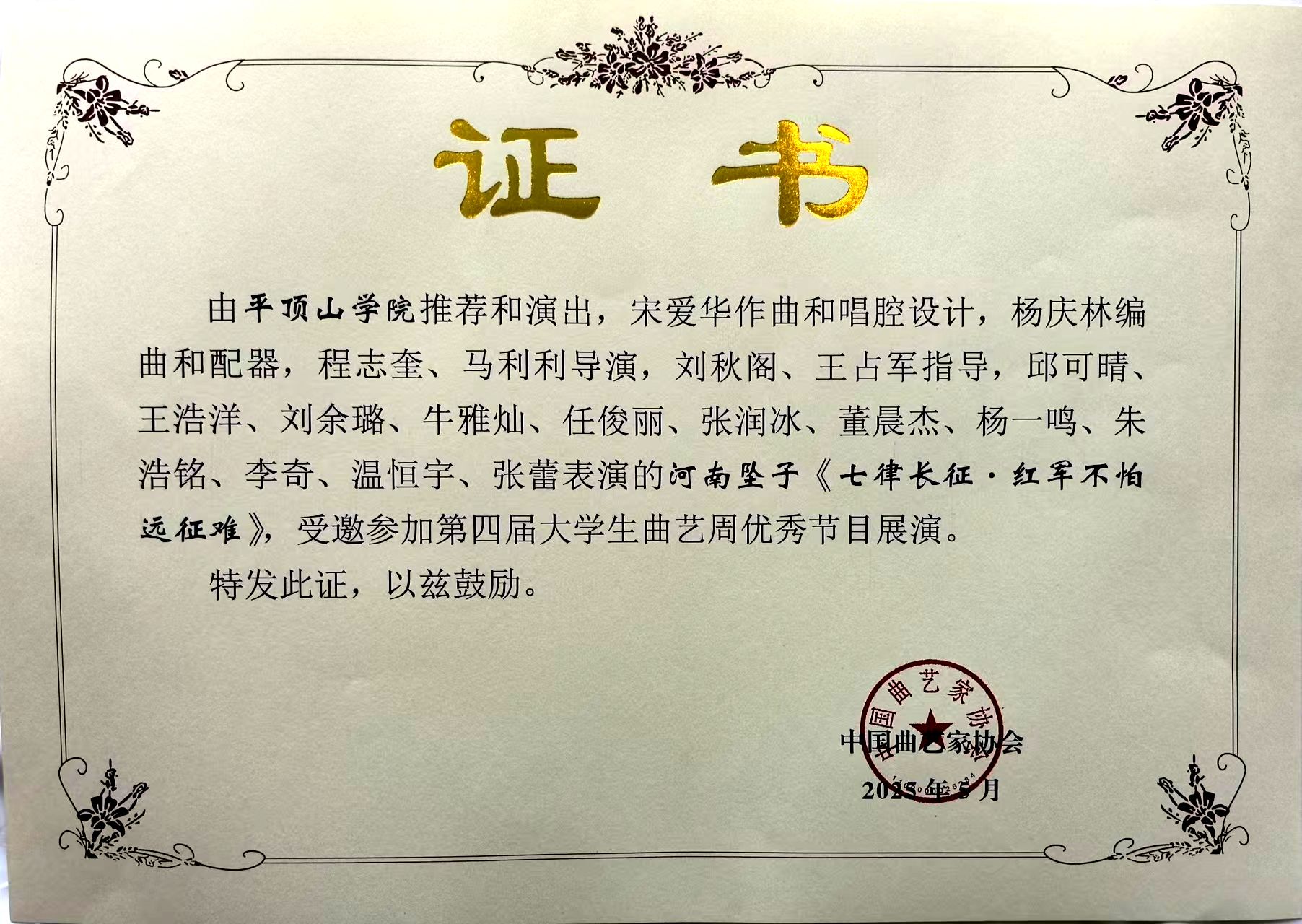 公司长期致力于中华优秀传统文化的教学与实践,深耕文化沃土,构建了“以文化人、以艺育人”的教学体系,践行育人使命。长期以来,公司深耕河南坠子非遗传承与美育实践探索,依托平顶山市“中国曲艺名城”资源,通过开设特色课程,将红色文化、非遗技艺融入专业教学。通过《摘棉花》《七律长征》等红色题材创作,引导员工以曲艺讲好中国故事,厚植家国情怀。