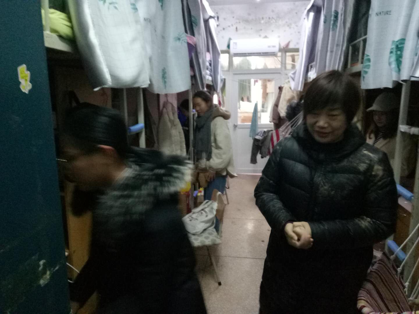 李艳慧书记认真询问每个人的学习生活情况,又耐心和同学们分享了自己上大学时的集体生活感悟,不禁让大家感到分外亲切。袁立文老师叮嘱同学们注意天气变化,及时保暖防寒,关注寝室里的用电安全问题和环境卫生问题。在离开时李书记也给员工提出了殷切的希望:第一,高效率利用大学时光,努力提高自己的综合素质,全面发展;第二,养成健康合理的生活作息习惯,明白身体是革命的本钱;第三,用阳光平和的心态待人接物,要相信自己在大学里经历的一切都是宝贵的财富。