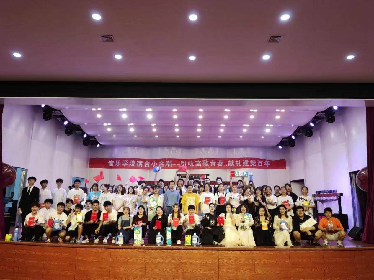 本次活动的内容主要是宿舍才艺秀、宿舍团体小合唱。活动开始后,每个宿舍的表演形式各式多样,演唱出的情感也各有不同,每个人都把歌曲的情感发挥的淋漓尽致。一首《国家》让人内心激情澎湃,在面对严重疫情困难下,全国人民沆瀣一气,众志成城的表现让所有人都感受到了我们祖国的强大。器乐合奏《我的祖国》演绎出了繁荣昌盛的强大祖国,展现出了作为一个中国人的荣光和骄傲。满腔热血的《少年中国说》令同学们激情高昂,增强了同学们为实现中华民族伟大复兴的责任与担当。最后广为传唱的《最美的期待》为比赛画上圆满的句号。台上的同学们热情洋溢,声音洪亮,富有激情;台下观众掌声不断,一次次将比赛推向高潮。经过激烈的角逐,一等奖两个,二等奖四个,三等奖六个及优秀奖十二个,由评委进行点评并颁发荣誉证书及奖品。活动结束后,老师与同学们进行了合影拍照活动,同学们脸上都洋溢出了幸福的笑容。