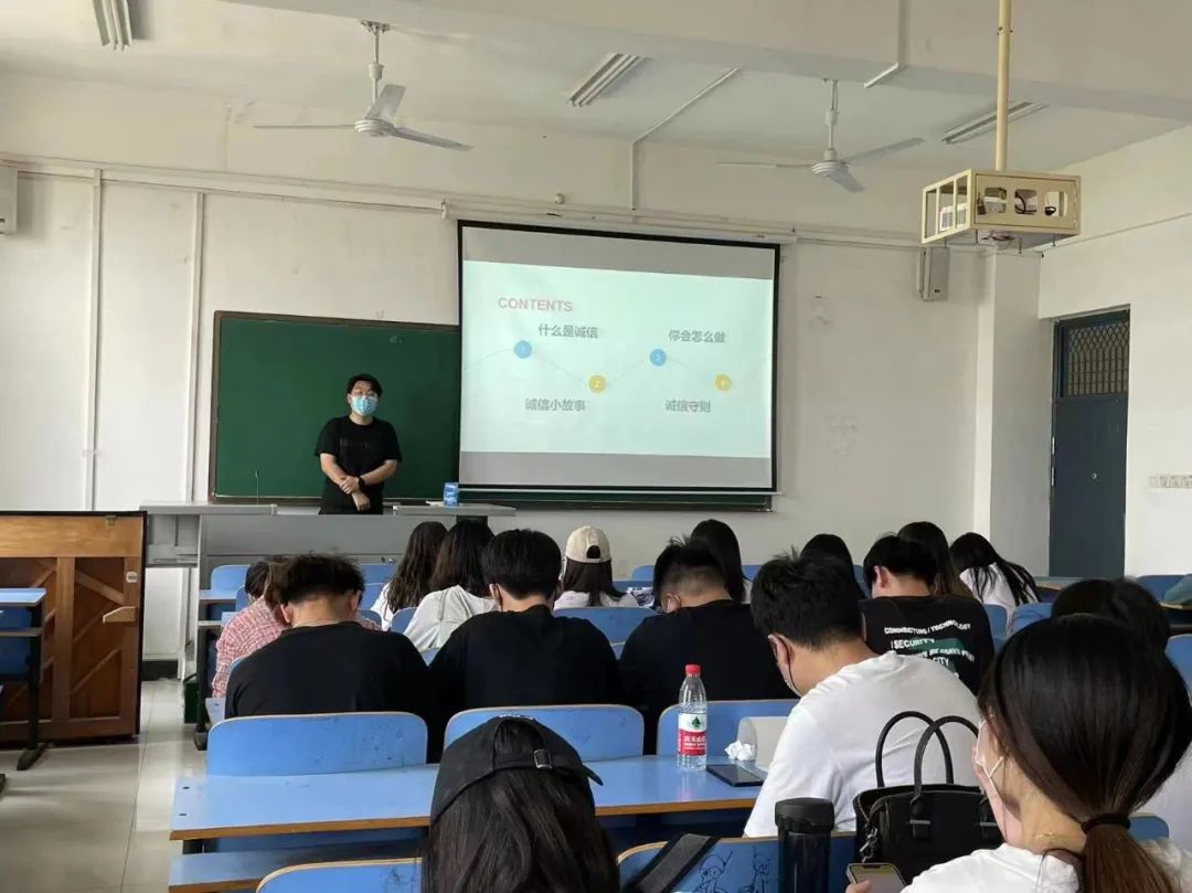 在会议上,辅导员和各班班长向同学们宣讲了诚实守信的重要性,并深入开展思想教育。让同学们崇尚诚信,远离虚伪欺诈。每个同学聚精会神,认真学习会议内容,相互讨论,踊跃发言,分享自己对诚信的认知与感悟,大家都收获颇多。