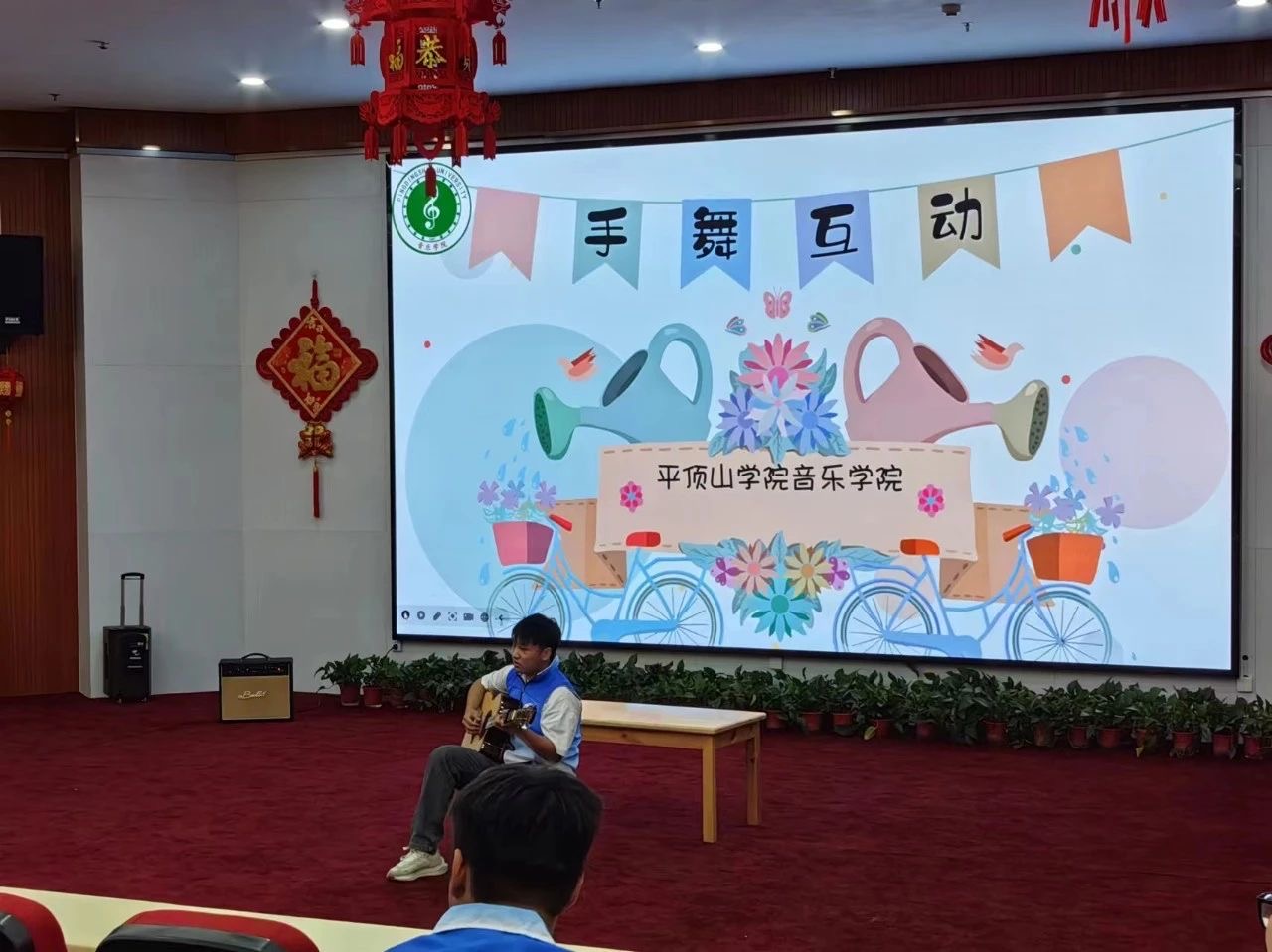 志愿者江浩为在场的孩子们带来吉他弹唱《虫儿飞》