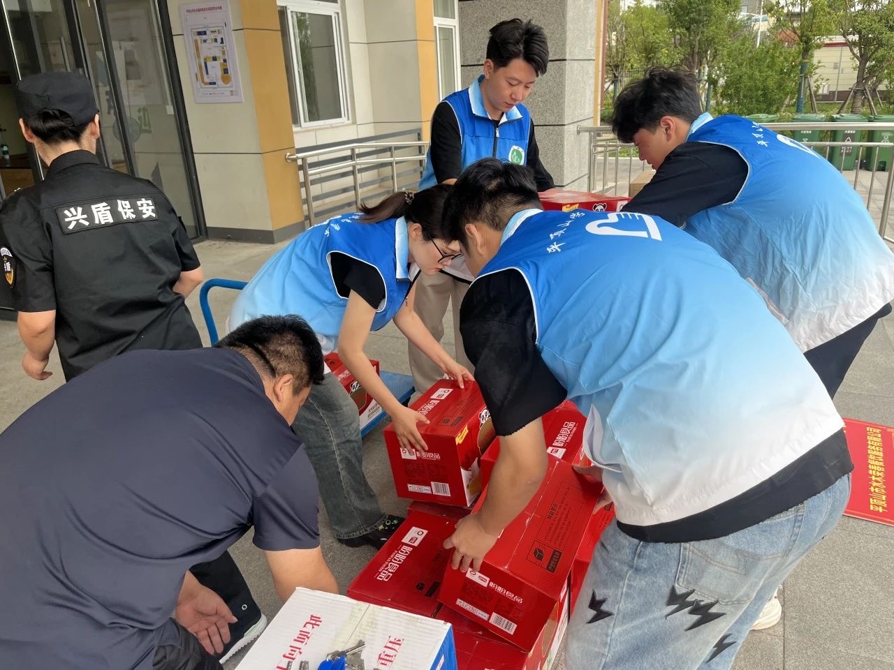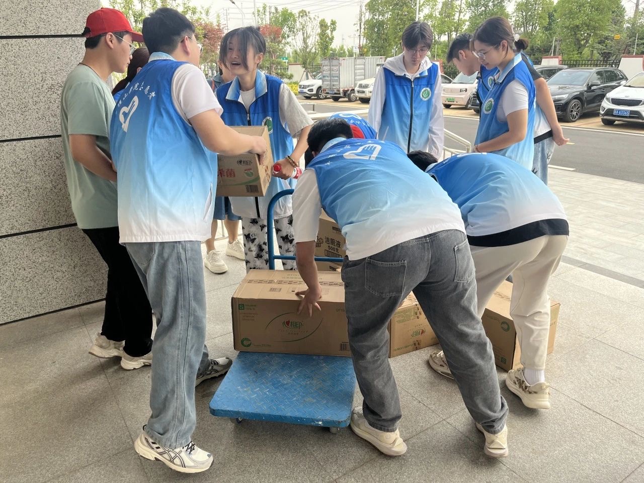 党团志愿者帮忙搬运捐赠物资
