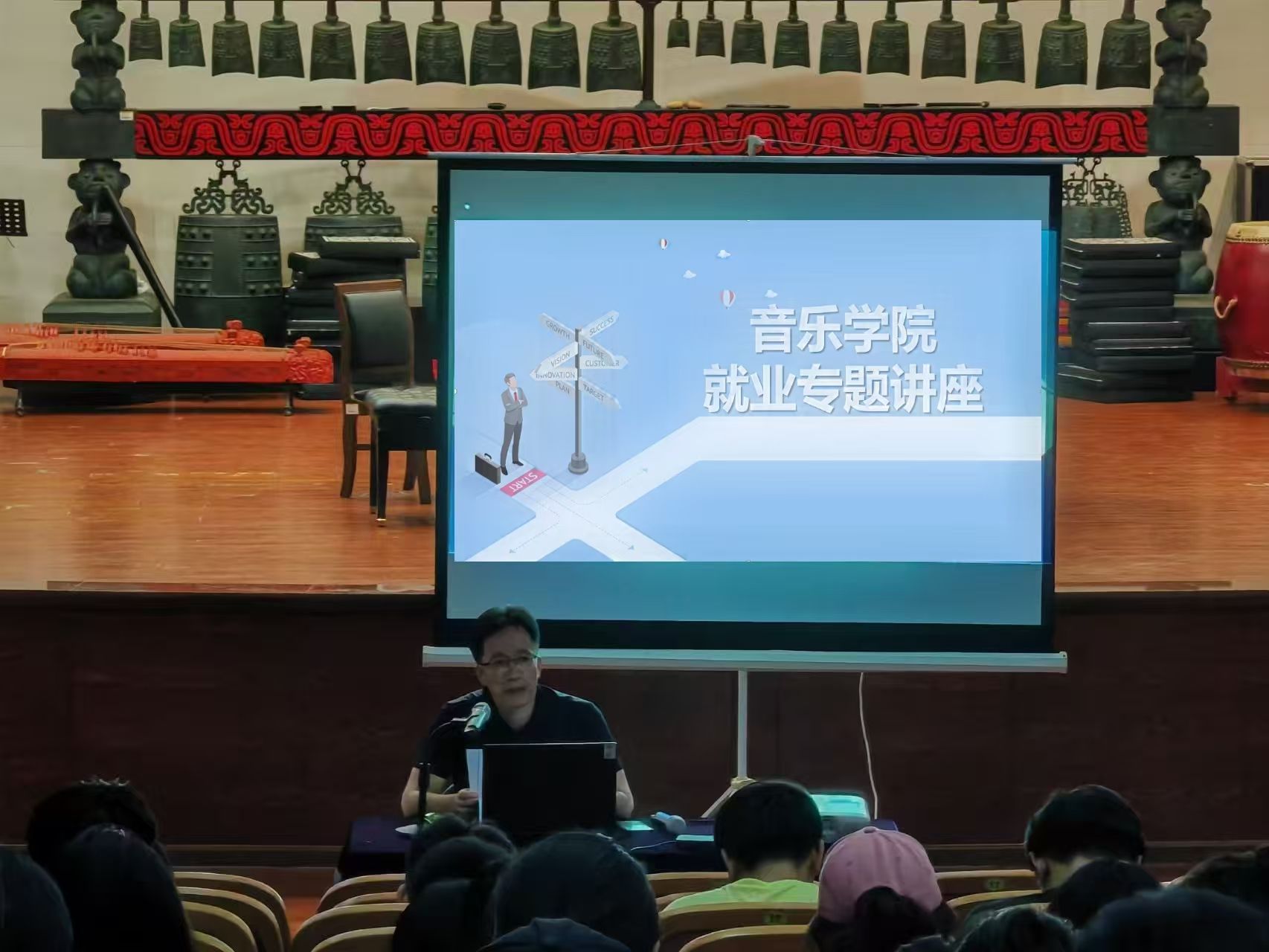 程志奎向同学们介绍了音乐行业的就业趋势和就业前景,并指出音乐行业的就业市场逐渐向多元化发展,鼓励员工多参与音乐活动、积累实践经验,并在求职过程中展现自己的个人特色和优势。