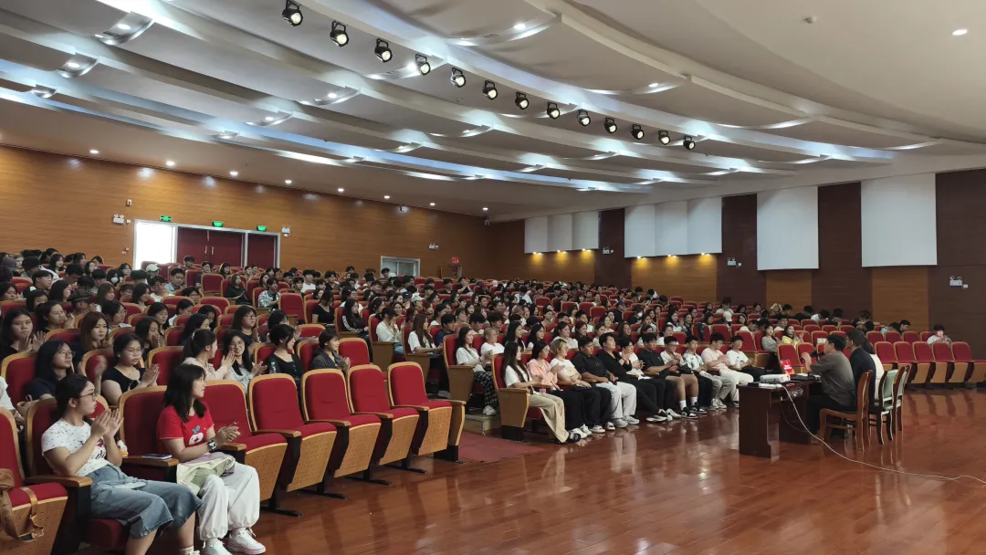 活动在激昂的《我和我的祖国》合唱中拉开序幕,师生们用歌声抒发炽热的爱国情怀。随后,姜星作《赓续抗战精神奏响青春强音》专题讲座。围绕“铭记历史瞬间”“回望峥嵘岁月”“汲取榜样力量”“勇担时代使命”及“规划校园生活”五个篇章展开。通过回顾纪念抗日战争暨世界反法西斯战争胜利80周年阅兵的震撼场景,生动阐释了中华民族从站起来、富起来到强起来的伟大飞跃,以及人民军队威武之师、文明之师的时代风貌,极大激发了同学们的爱国热情和民族自豪感。接着他深情回溯了十四年抗战的艰苦卓绝,深刻解读了以爱国情怀、民族气节、英雄气概和必胜信念为核心的伟大抗战精神。这种精神深深植根于中华五千年的文明血脉,是激励我们不断前进的强大动力。通过讲述民族英雄杨靖宇、赵一曼以及“两弹一星”元勋钱学森等不同时代楷模的感人事迹,生动展现了信仰的力量与家国担当,引导同学们见贤思齐,汲取奋进力量。