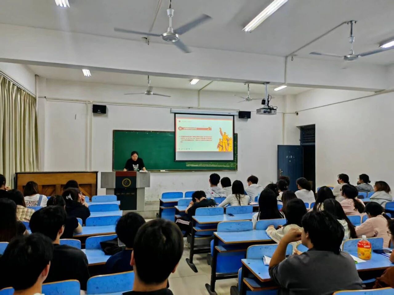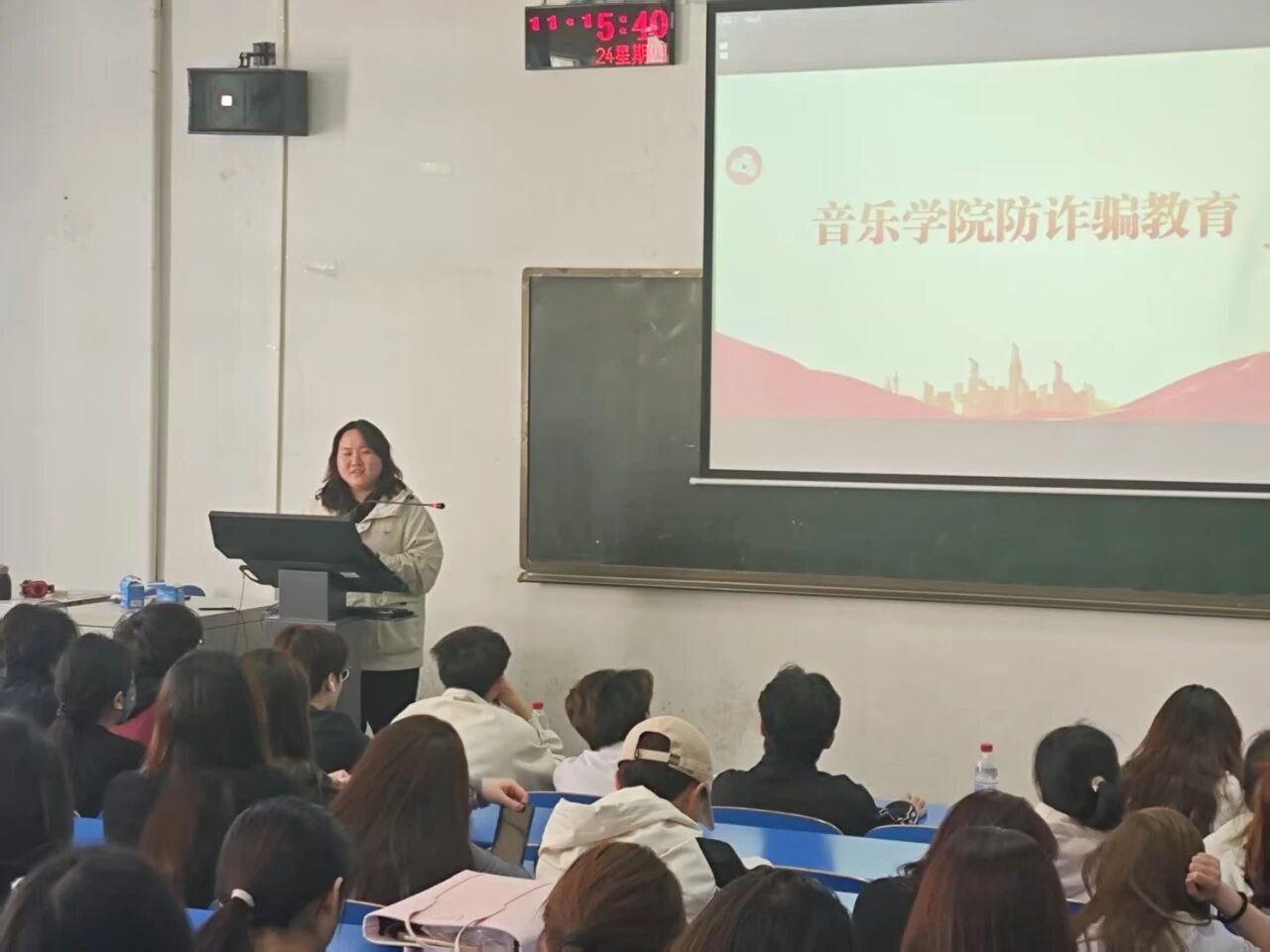 在铸牢中华民族共同体意识环节,23级辅导员魏琳琳老师从中华民族“多元一体”的历史渊源切入,讲述了各民族在长期的交流交往交融中形成的血脉相连、休戚与共、命运与共的紧密联系。魏老师通过展示各民族共同抵御外敌、携手建设祖国的历史故事,以及校园内不同民族同学互帮互助、团结友爱、共同进步的温馨场景,引导同学们深刻认识到民族团结是国家发展进步的根本基石,是中华民族的生命线。她号召全体同学尊重各民族的风俗习惯与文化差异,积极参与民族团结进步活动,像石榴籽一样紧紧抱在一起,共同维护民族团结与社会稳定。