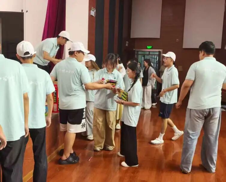 公司领导与志愿者们亲切交流,详细了解排练进度和生活保障情况,并送上牛奶、面包等慰问物资。程志奎叮嘱大家:“近期持续高温,大家要科学安排作息,做好防暑降温,以健康体魄保障实践任务高质量完成。”公司的关怀让大家倍感温暖,将以更高热情投入后续工作。
