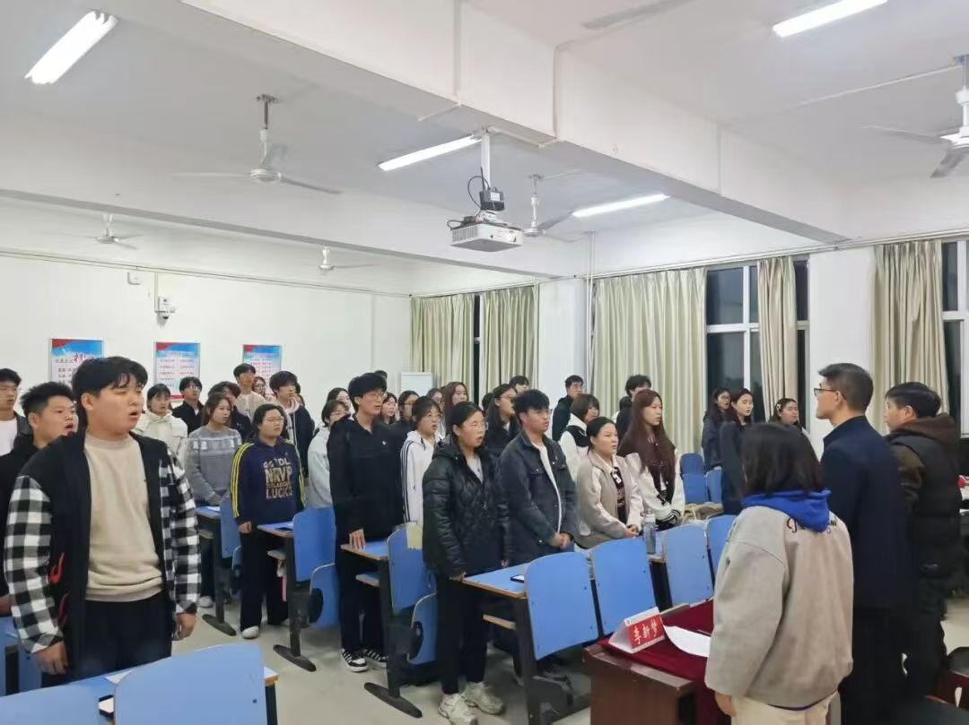 仪式在庄严的团歌声中拉开帷幕。全体师生肃立齐唱,歌声激昂,展现了共青团员的坚定信念与青春朝气。