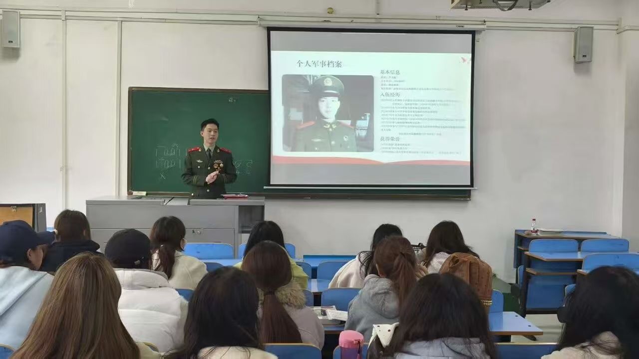 会上,李飞毅结合自身军旅生涯,从国防建设的重要意义、我国国防事业的发展成就等方面展开讲解。他通过军营日常训练、执行任务的真实故事,生动诠释了“军人”二字的重量,让同学们直观感受国防力量的坚实可靠,进一步加深了对国防教育内涵的理解。