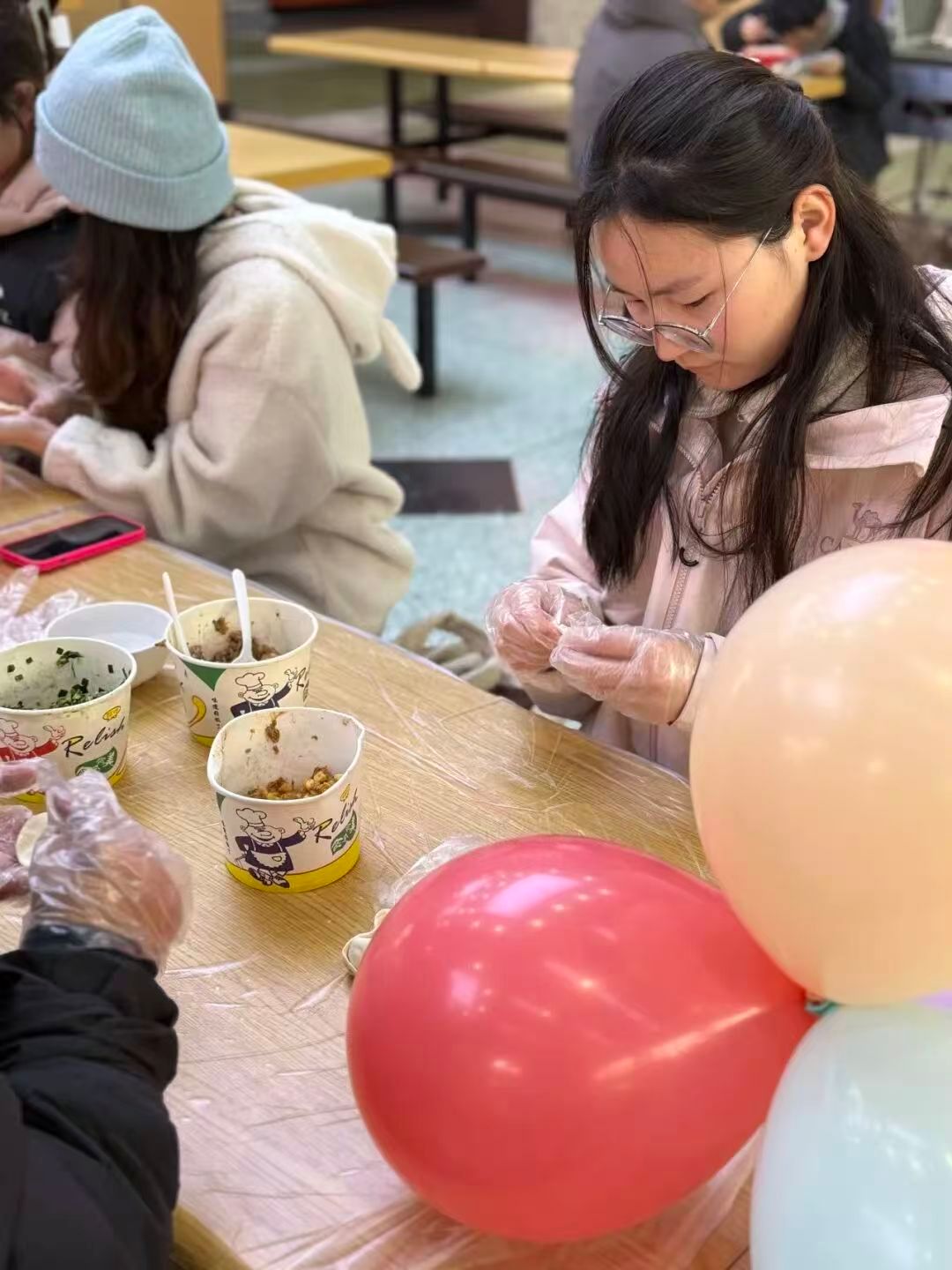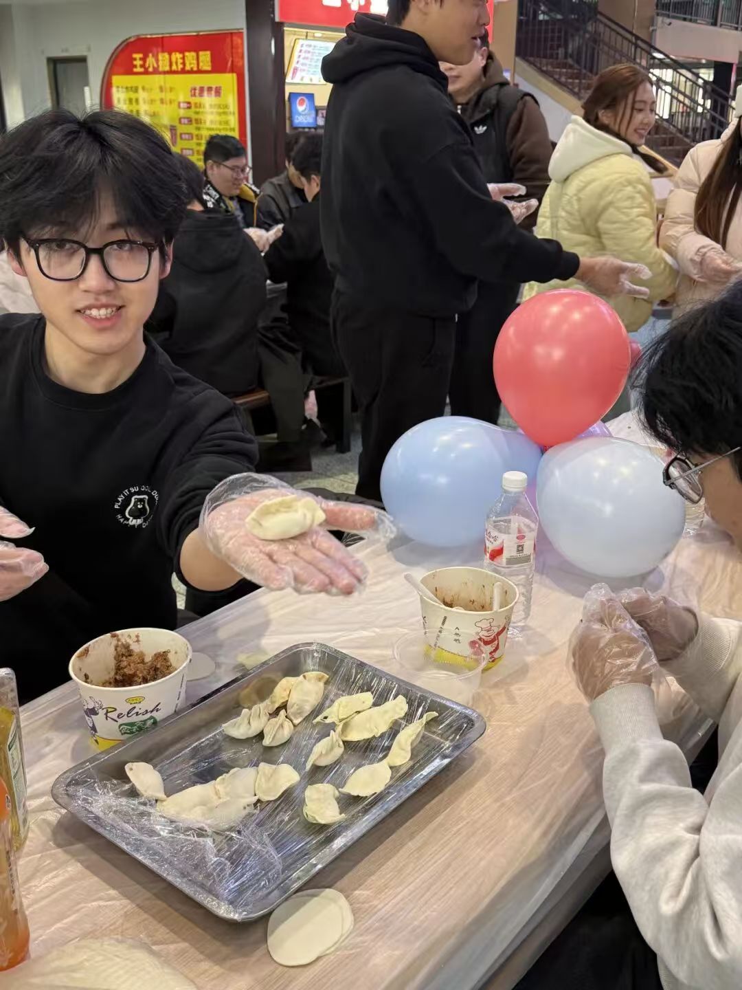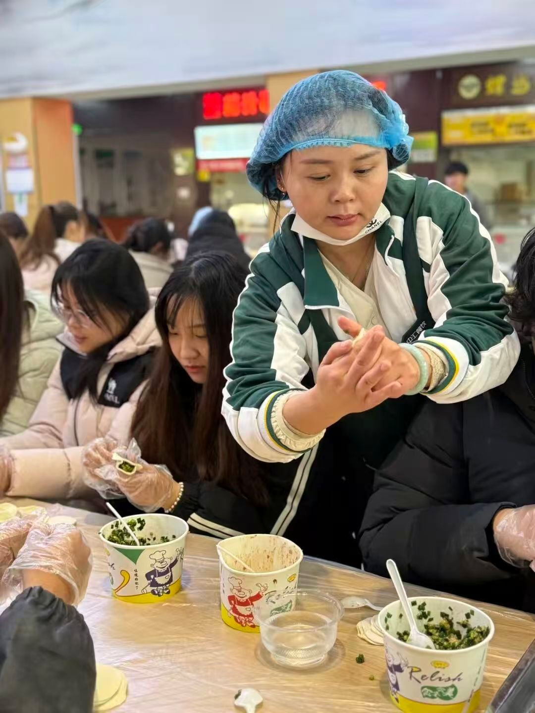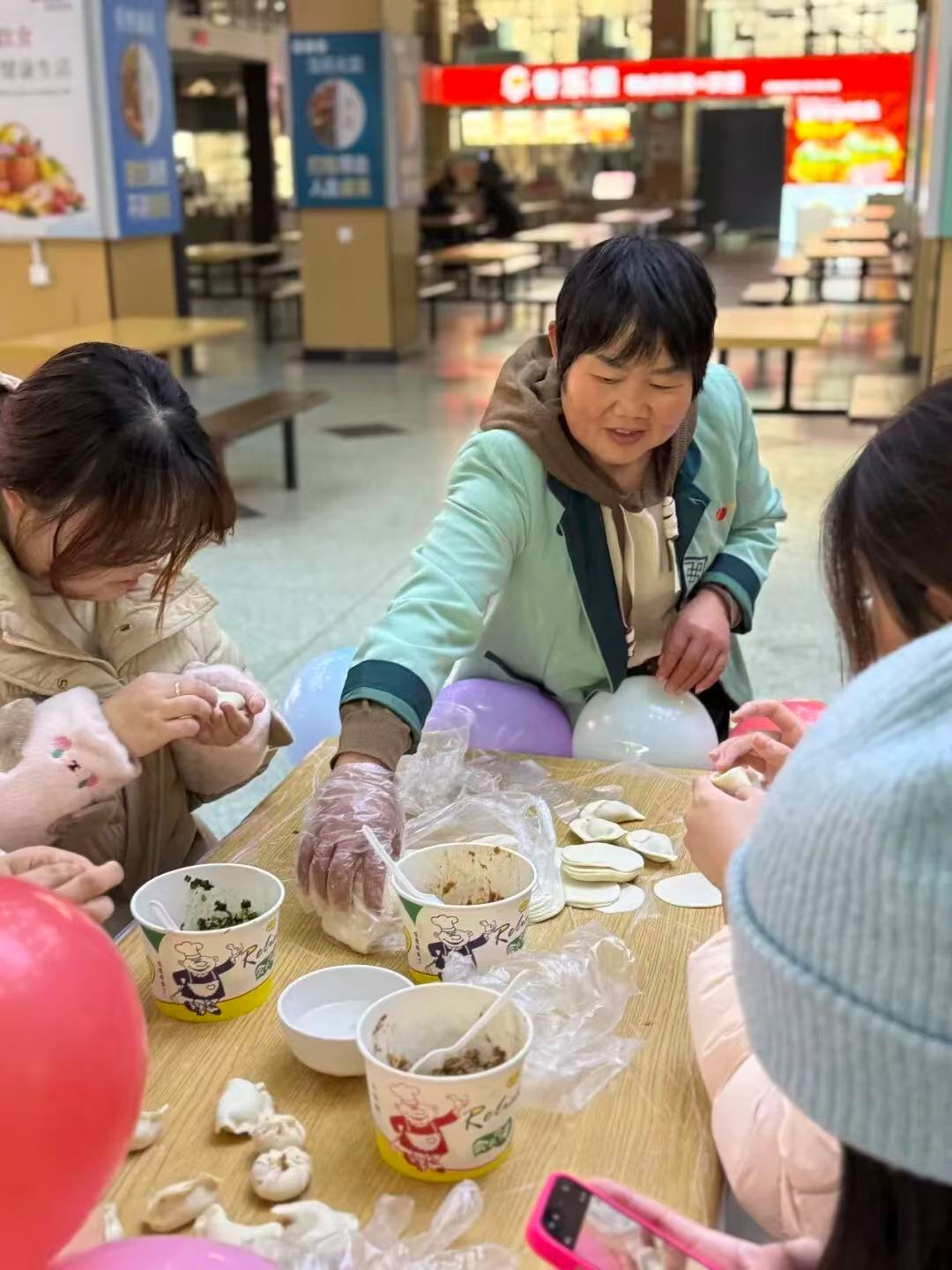 食堂阿姨们更是手法娴熟,一边飞快擀出薄厚均匀的饺子皮,一边手把手教同学们捏褶技巧,细致传授包饺子的小窍门。