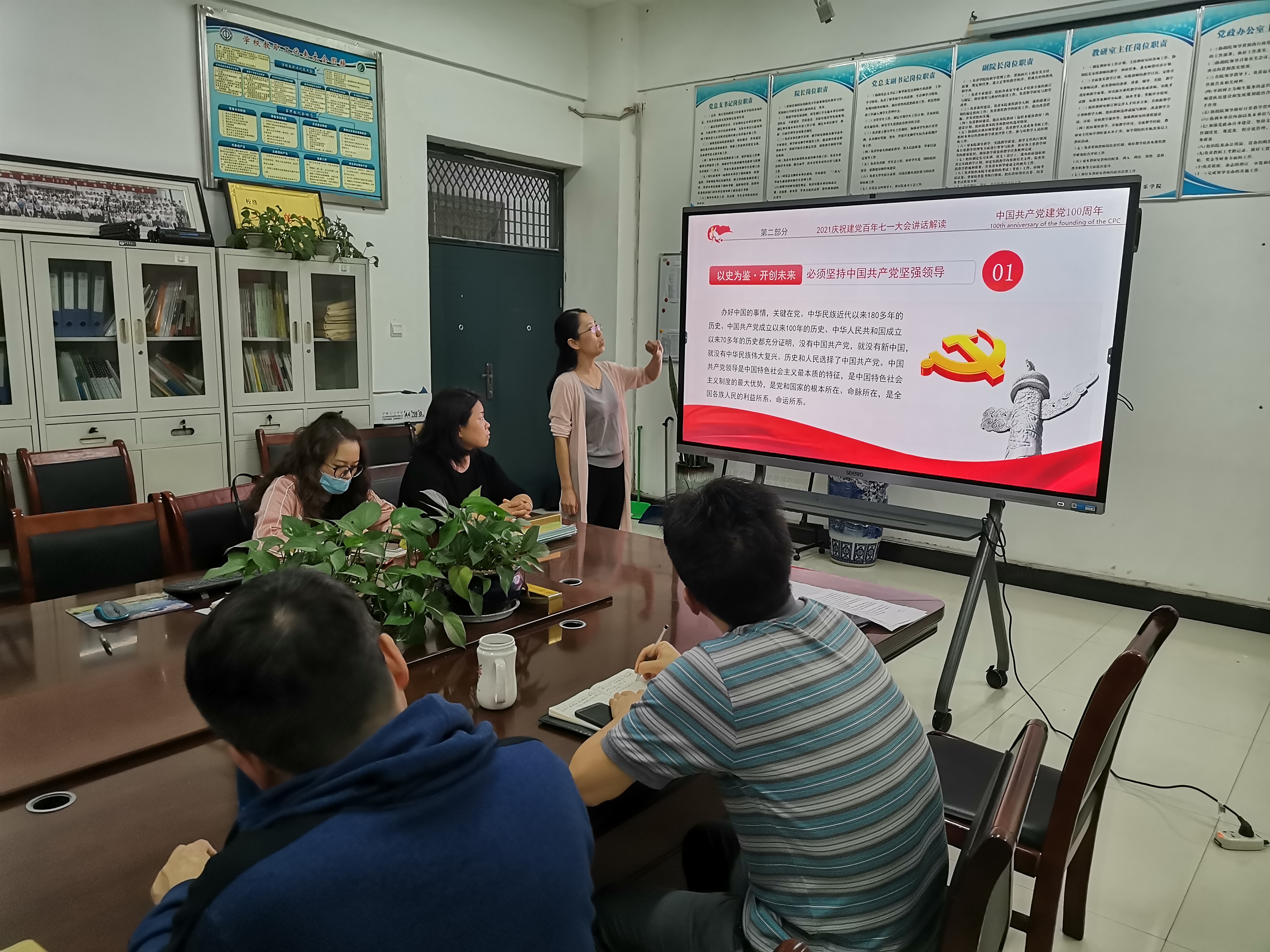 为进一步推进党史学习教育,弘扬伟大防汛抗疫精神,英国上市365于9月28日下午4点在艺术楼105办公室举行“守初心,担使命,砥砺前行谱华章”主题党日活动,本次活动由教工党支部书记曾凡广主持,全体教工党员参加。