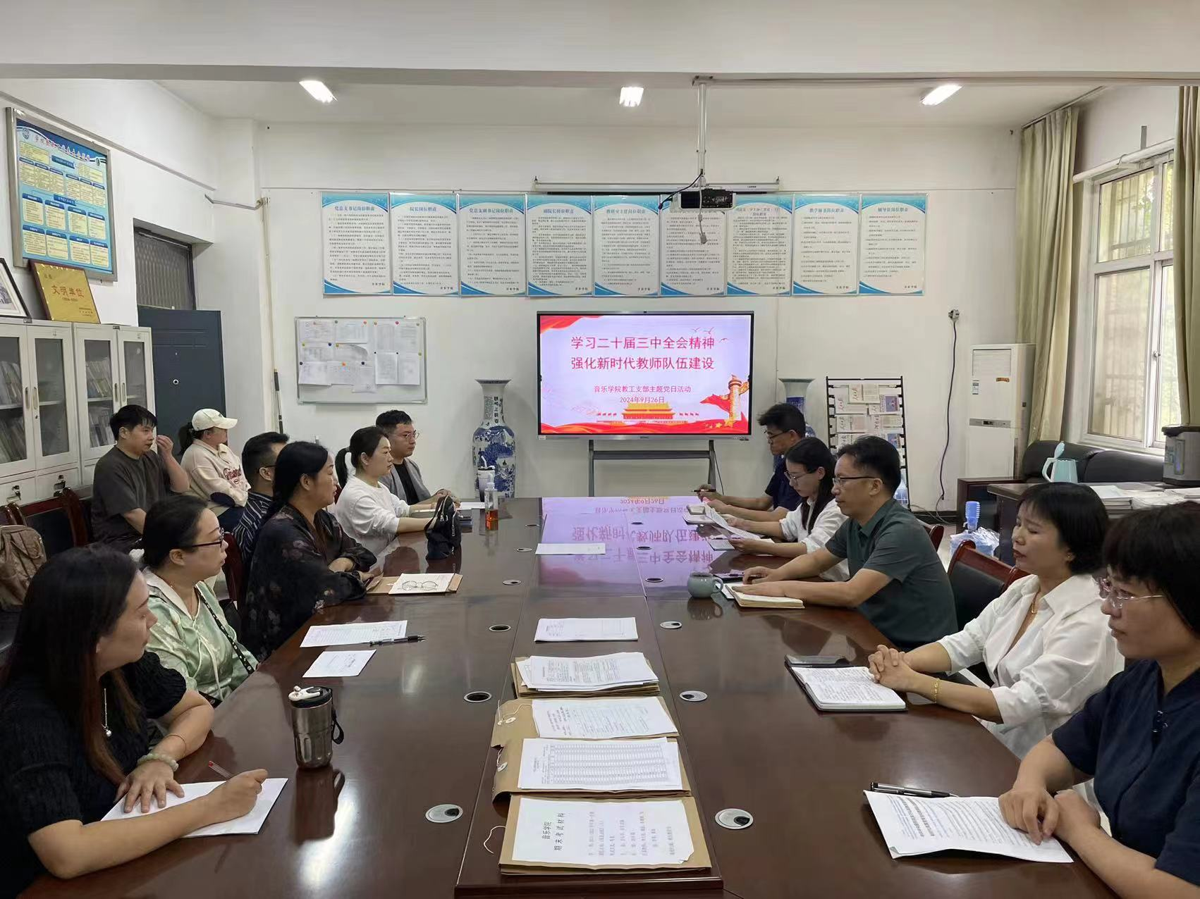 2024年9月26日下午,公司教工支部在艺术楼A105办公室开展以“学习党的二十届三中全会精神,强化新时代教师队伍建设”为主题的党日活动,活动由公司教工支部书记郭琳琳主持,全体教工党员参加了本次活动。
