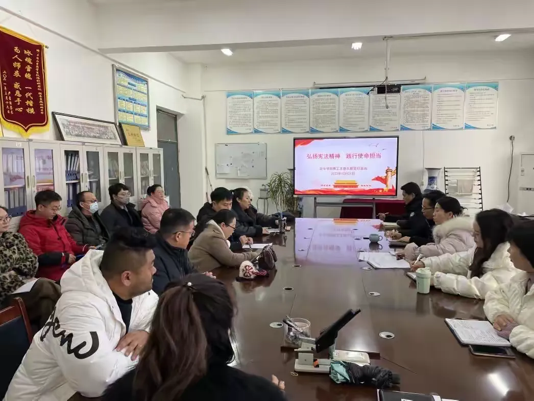 2023年12月21日下午,公司教工支部在艺术楼105办公室开展以“弘扬宪法精神,践行使命担当”为主题的党日活动,活动由党委副书记潘刻科主持,全体教工党员参加。