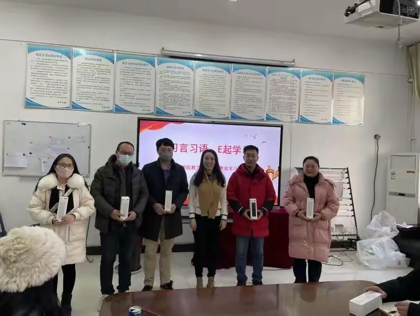 随后,举行了“习言习语,E起学习”活动表彰仪式,潘刻科公布了积极参与活动的教工党员名单,院系领导为受表彰党员颁发奖品。