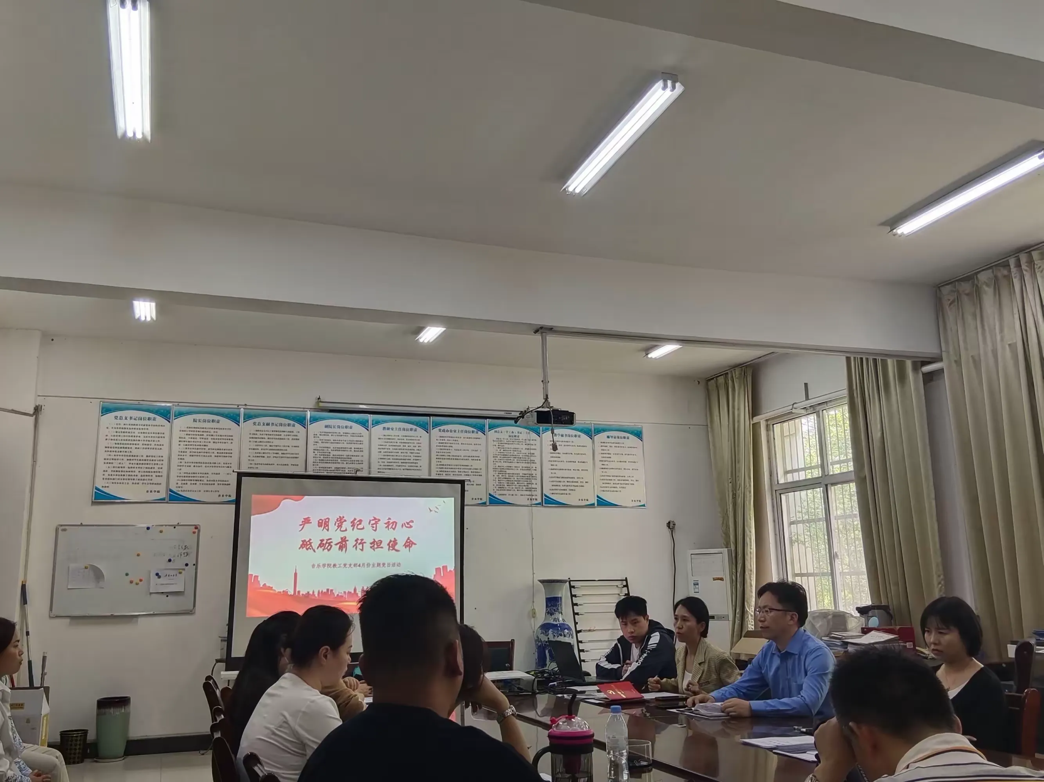 2024年4月28日下午,公司教工支部在艺术楼A105办公室开展以“严明党纪守初心,砥砺前行担使命”为主题的党日活动,活动由公司党委书记潘刻科主持,全体教工党员参加。