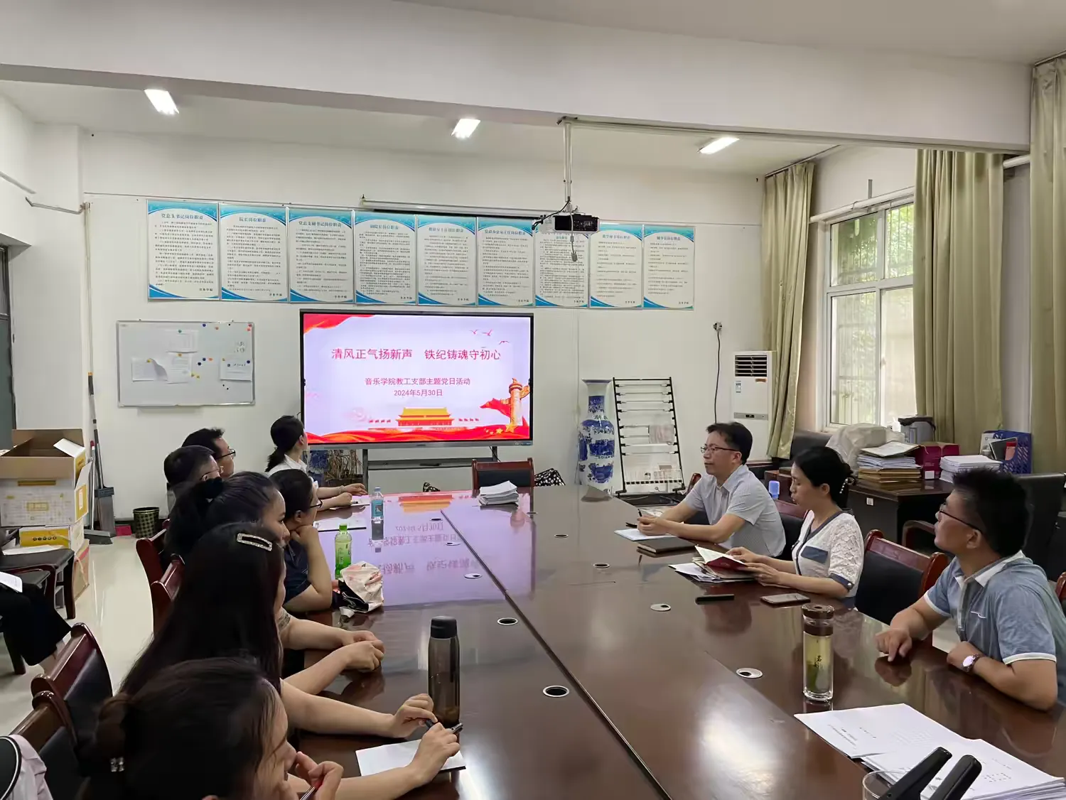 2024年5月30日下午,公司教工支部在艺术楼A105办公室开展以“清风正气扬新声,铁纪铸魂守初心”为主题的党日活动,活动由公司教工支部书记曾凡广主持,全体教工党员、科级干部和党外人士教师代表参加活动。