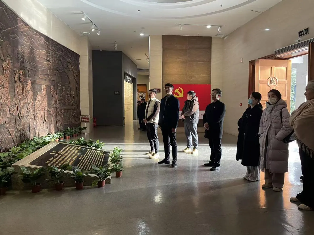 党课结束后,全体党员面向党旗列队肃立,在经理程志奎的领誓下重温入党誓词。铿锵有力的誓言回荡在纪念馆广场,进一步强化了党员的身份认同、责任意识与信仰自觉。