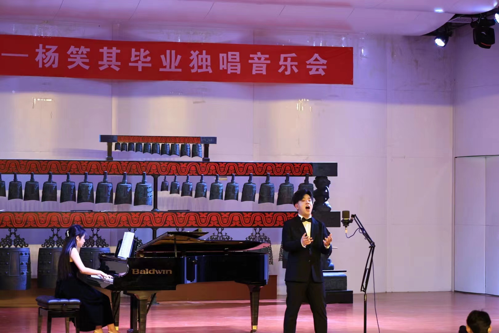 正如他在音乐会结束后的感言:“我今后一定会在这条道路上更加努力,牢记老师对我的教导,持续完善自己,踏实虚心学习,愿未来可期!”虽然这是一场毕业音乐会,但也是他人生一个新的起点。杨笑其同学正是用他的歌声,深深表达了对母校和老师的留恋和感恩之情。此次毕业音乐会的成功举办,不仅是员工对自己专业学习的检验和总结,也是为老师们的四年培养和指导,交出了一份完美毕业答卷,愿员工在今后的发展道路上步步高升。