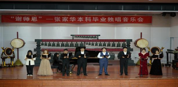最后,歌曲《老师我总是想起你》把整场音乐会气氛推向了高潮,张家华以这首歌来感激老师们辛勤的教育和教导,也为今晚以“谢师恩”为主题的音乐会画上完满的句号,观众们掌声雷动,好评如潮。在阵阵欢呼和喝彩声中,本场毕业独唱音乐会,圆满落下帷幕,使观众们感受到了声乐艺术的无尽魅力。