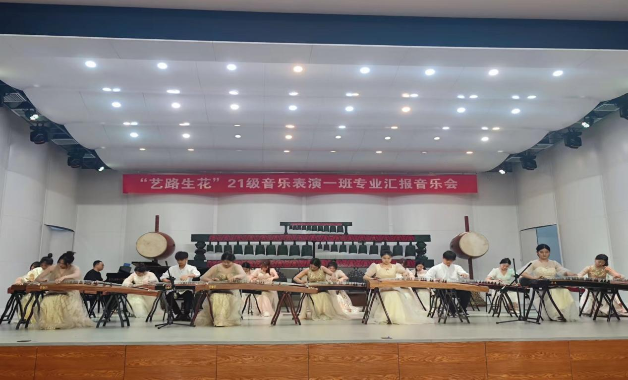 在这个璀璨的夜晚,21级音乐表演班的学子们在汇报音乐会上将表演艺术演绎得淋漓尽致,他们满怀热爱与憧憬,汇聚于此次汇报音乐会专场的华丽舞台上,共同感受音乐旋律的无穷魅力,同学们以精湛的演唱技巧和独具匠心的音乐元素,为观众呈现一场美轮美奂的听觉盛宴。音乐会在古筝合奏《黄河》中拉开帷幕,这首古筝重奏合奏作品,不仅表现了黄河儿女的英雄气概,更是歌颂了中华民族源远流长的光荣历史和中国人民坚强不屈的奋斗精神。