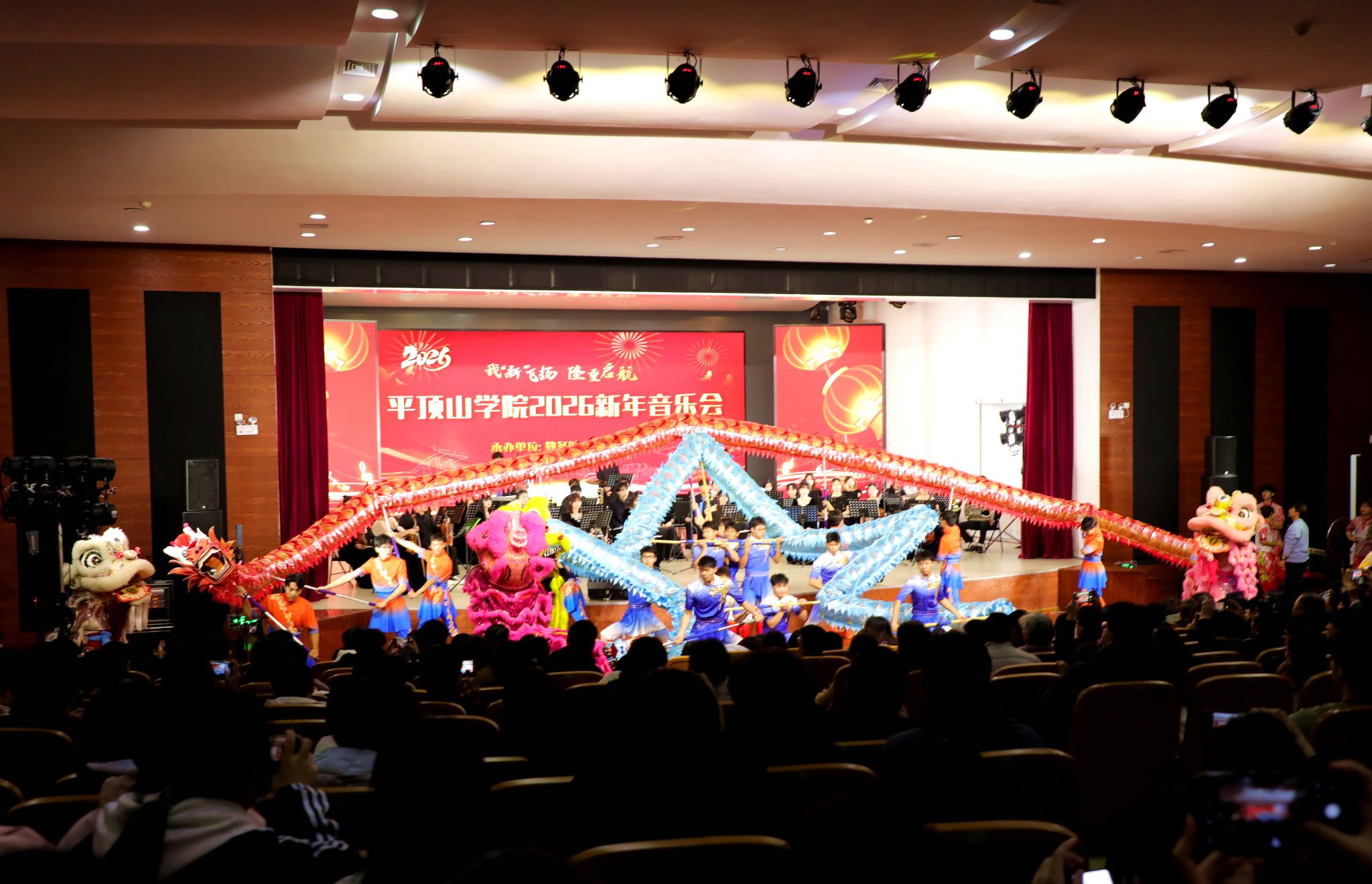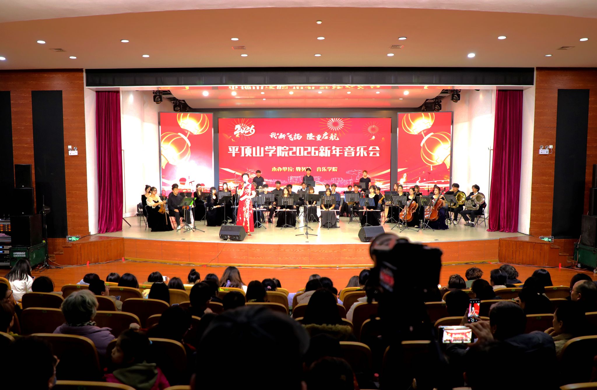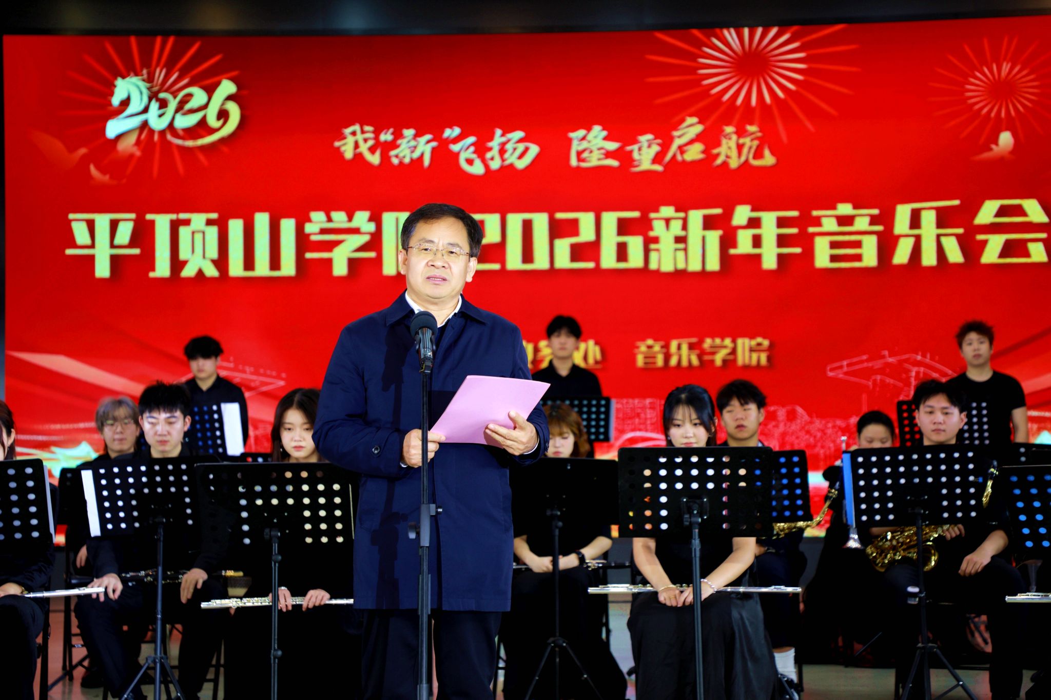 岁聿云暮,新元肇启;乐声盈耳,情暖平院。12月29日晚,由公司承办的“我‘新’飞扬 隆重启航”2026新年音乐会在湖滨校区音乐厅奏响。董事长郭秋平、党委副书记许建辉、侯延民、副董事长史永昌、代克杰、纪委书记白燕与近500名师生代表共聚这场视听盛宴,喜迎新年曙光。