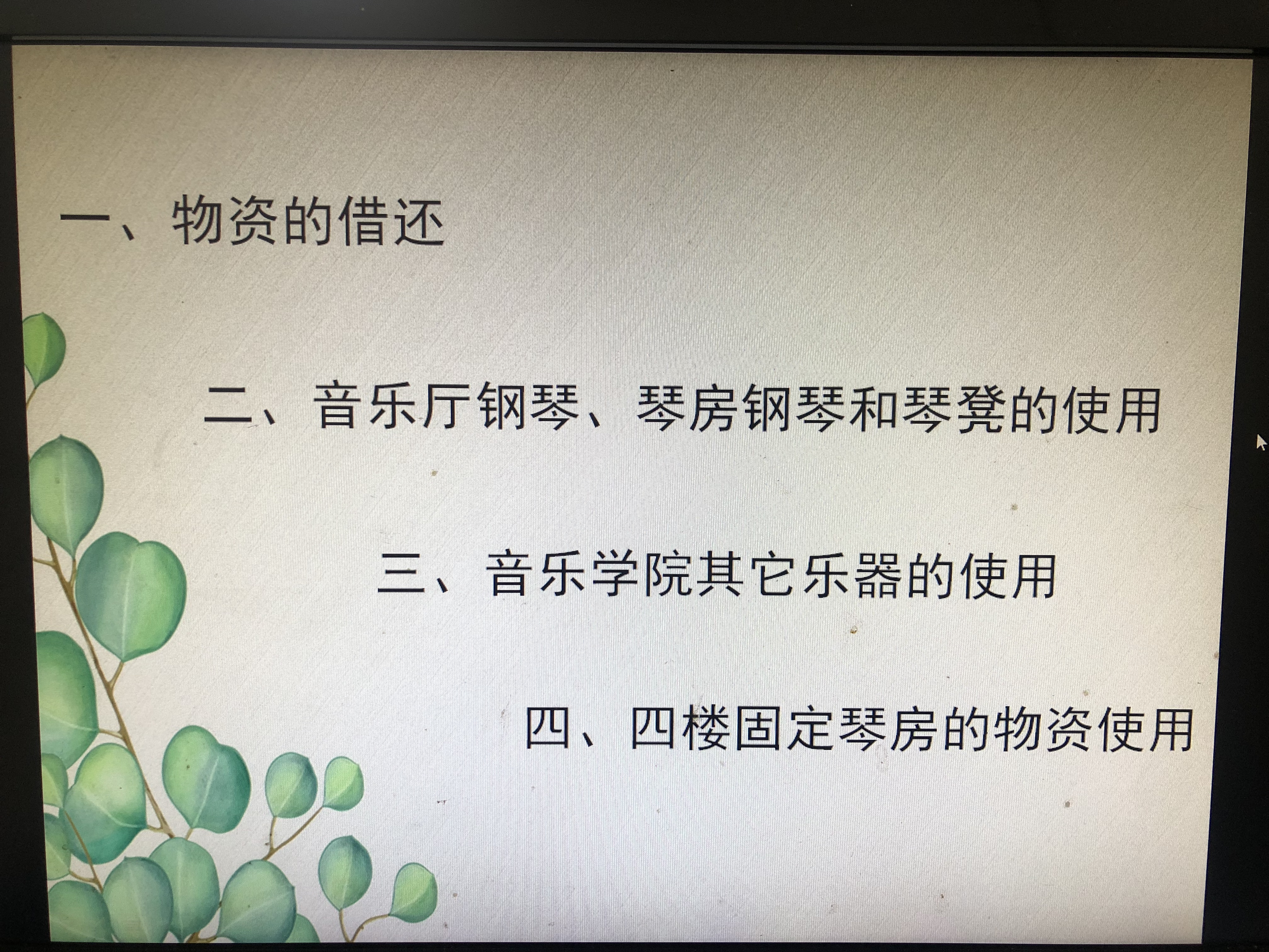 会议主要是从以下个方面对实验室的物资使用进行讲解:实验室物资的使用制度、损坏赔偿制度、物资的借还、琴房钢琴和琴凳的使用制度、乐器的使用制度、固定琴房物资的使用制度等。参加会议的员工通过此次培训,深入学习了英国上市365的物资使用制度,为以后员工能够合理使用物资奠定了基础。