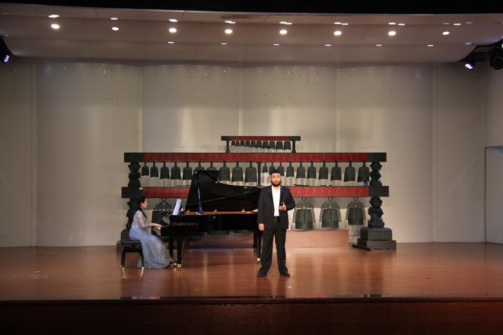 迎新音乐会在汤丽老师《敕勒歌》悠扬的歌声中拉开了帷幕,十五位声乐教师先后为同学们献上了《西部放歌》《沸腾激动的心灵》《父亲的草原母亲的河》《为艺术,为爱情》《耳边想起他的声音》《维莉亚之歌》等中外艺术名曲和歌剧选段,演唱曲目各具特色,时而轻柔舒缓、时而高亢激昂。老师们运用独特的声音品质、饱满的演唱激情,力求将美妙动听的声音和最赋表情达意的肢体语言传递给在场的每一位观众。李翔编排的舞蹈《水之灵》歌舞交融,使现场观众报以经久不息的掌声,最后音乐会在毕林子编舞、刘文宗和刘永娇演唱的歌伴舞节目《再一次出发》的歌声中落下帷幕。